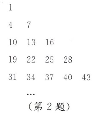 2. 将被3整除余数为1的正整数按照如图所示的规律排成一个三角形数阵,则第10行第9个数是 .