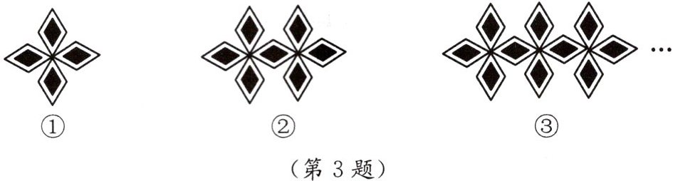 3. 如图是一组有规律的图案,第①个图案由4个基本图形组成,第②个图案由7个基本图形组成……第n(n是正整数)个图案由 个基本图形组成.