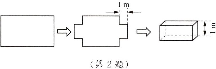 2. 如图,将一块长方形铁皮的四个角各剪去一个边长为1 m的正方形后,剩下的部分刚好能围成一个容积为$15\ m^3$的无盖长方体箱子,且此箱子底面的长比宽多2 m.设该长方体箱子底面的宽为$x$ m.