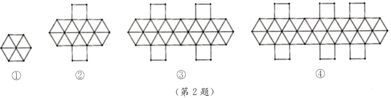 2. 用火柴棒搭建如图所示的四个图形,回答问题: