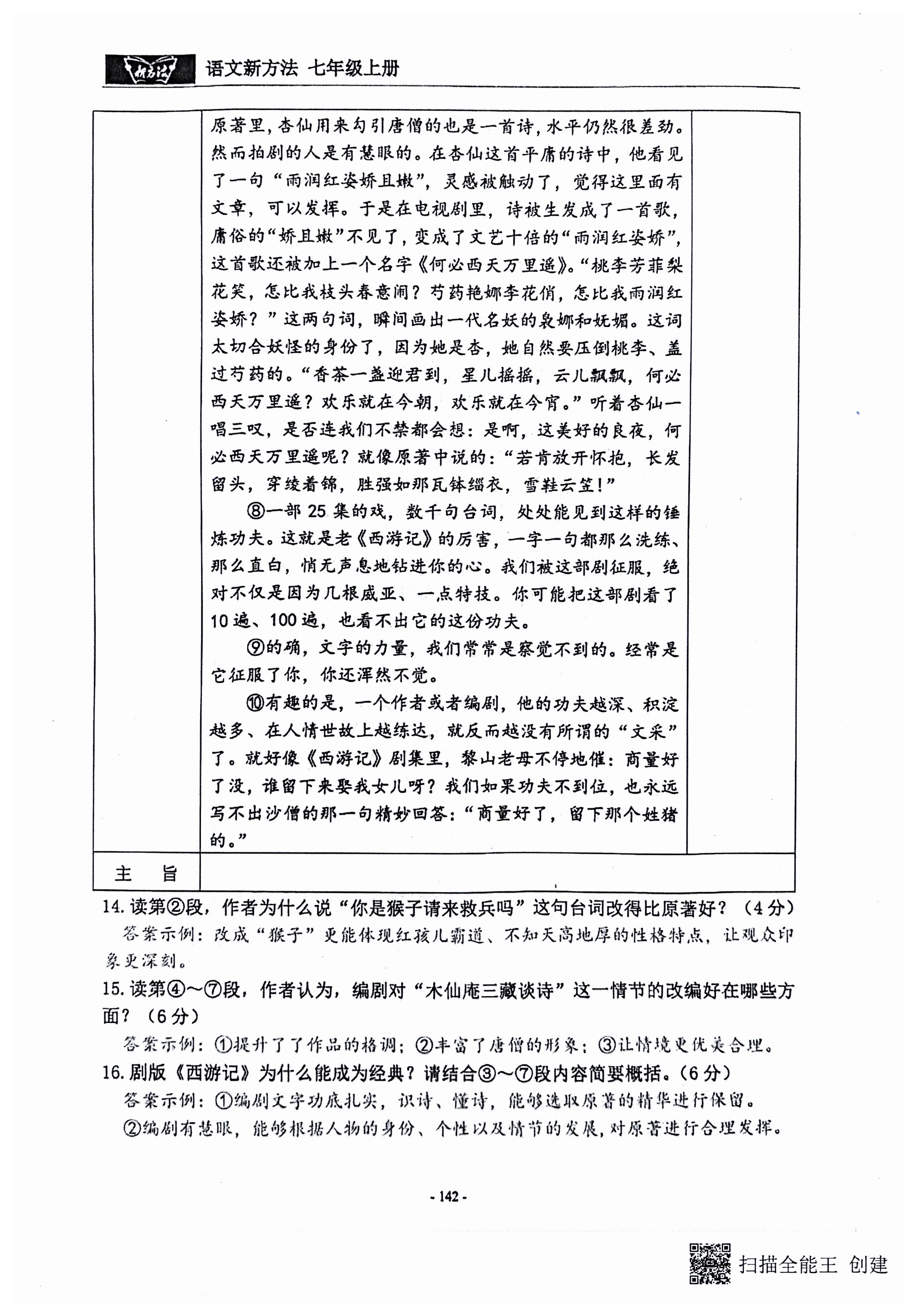 注:目前有些书本章节名称可能整理的还不是很完善,但都是按照顺序排列的,请同学们按照顺序仔细查找。练习册 2024年新方法七年级语文上册人教版 答案主要是用来给同学们做完题方便对答案用的,请勿直接抄袭。