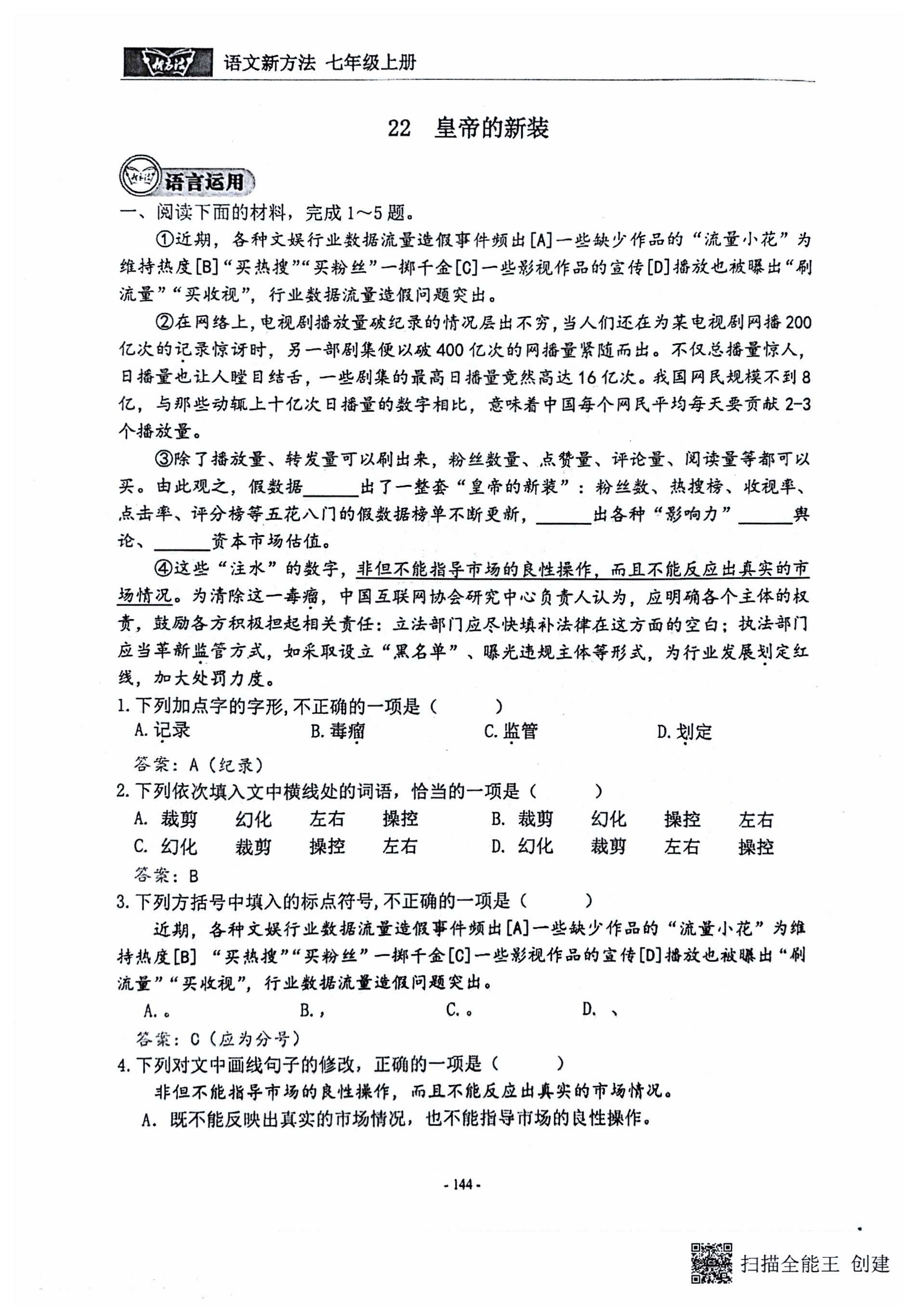 注:目前有些书本章节名称可能整理的还不是很完善,但都是按照顺序排列的,请同学们按照顺序仔细查找。练习册 2024年新方法七年级语文上册人教版 答案主要是用来给同学们做完题方便对答案用的,请勿直接抄袭。
