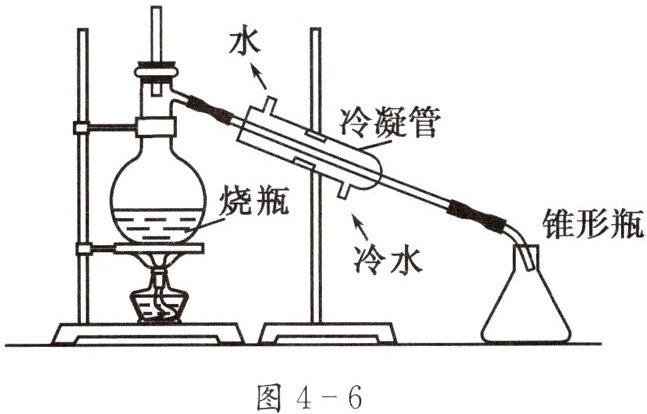 4. 由于水能够溶解多种物质,因此天然水总是溶有杂质。采用蒸馏的方法,可除去水中的杂质,得到纯净的水。如图 4 - 6 所示是实验室制取蒸馏水的装置。在制取蒸馏水的过程中,发生的物态变化有____和____。
