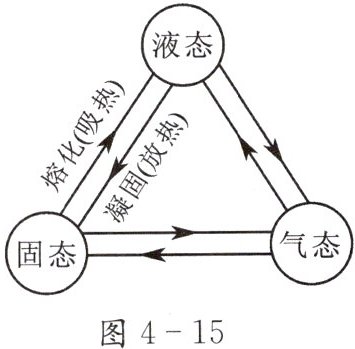 2. 在图 4 - 15 中,仿照固态与液态的转化,填入其他物态变化过程的名称及吸热、放热情况。