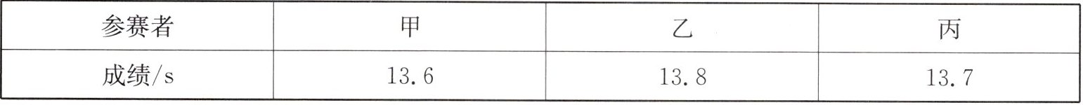 2. 在学校运动会上,甲、乙、丙三位同学进行百米赛跑,他们的成绩如下表所示。根据表中成绩可知,跑得最快的是______同学。这里比较三人运动的快慢时采用了在______相同的条件下比较时间的方法。