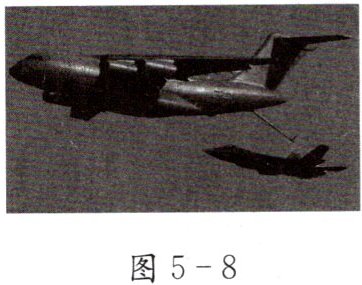 1. 如图 5 - 8 所示是加油机在空中给战斗机加油的画面。如果以加油机为参照物,那么战斗机是______的。