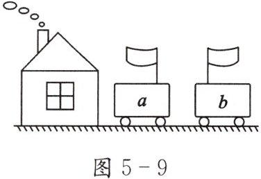 7. 观察图 5 - 9 中的烟和小旗,关于$ a $、$ b $两车相对于房子可能的运动情况,下列说法中正确的是( )。