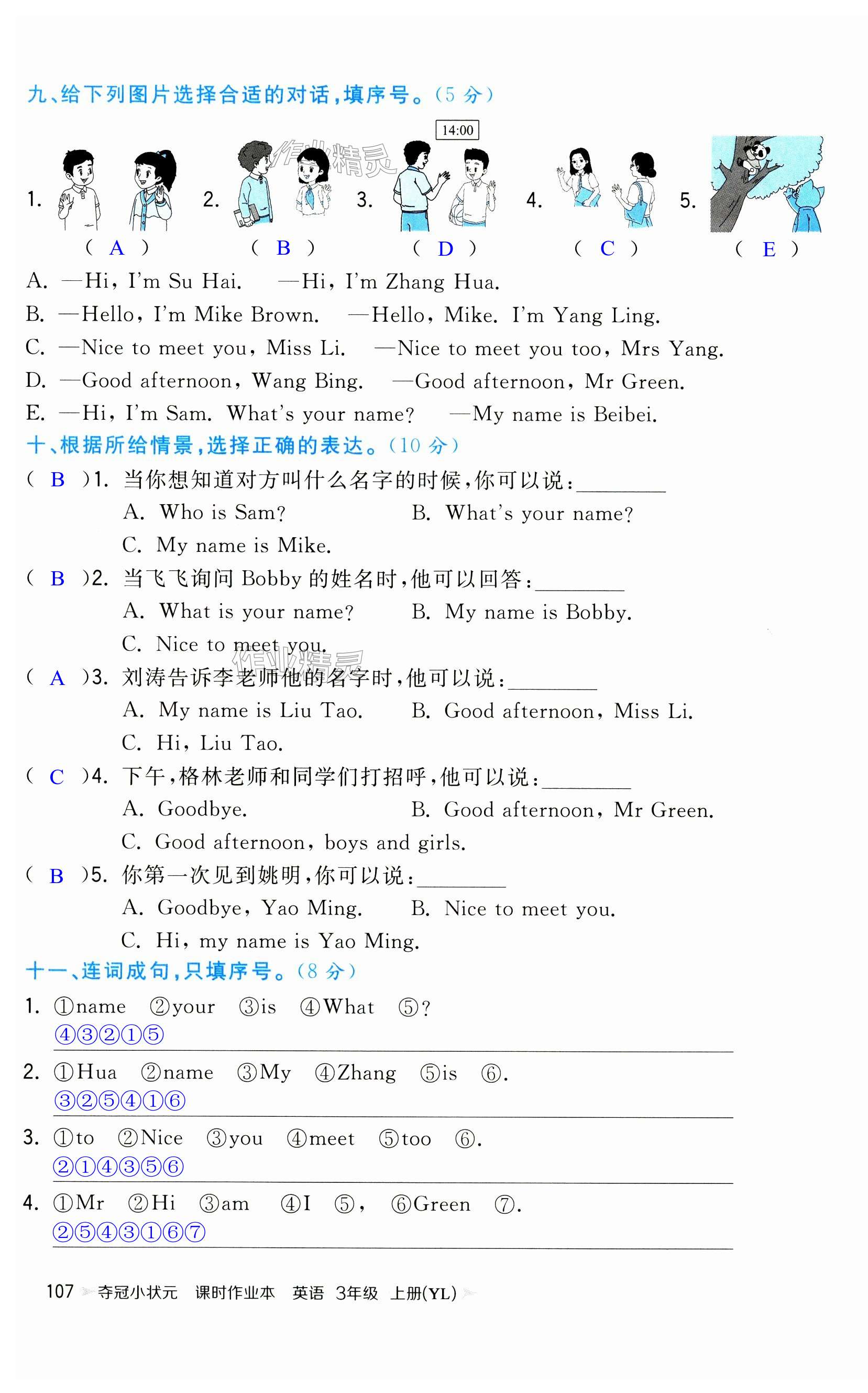 注:目前有些书本章节名称可能整理的还不是很完善,但都是按照顺序排列的,请同学们按照顺序仔细查找。练习册 2024年夺冠小状元课时作业本三年级英语上册译林版 答案主要是用来给同学们做完题方便对答案用的,请勿直接抄袭。