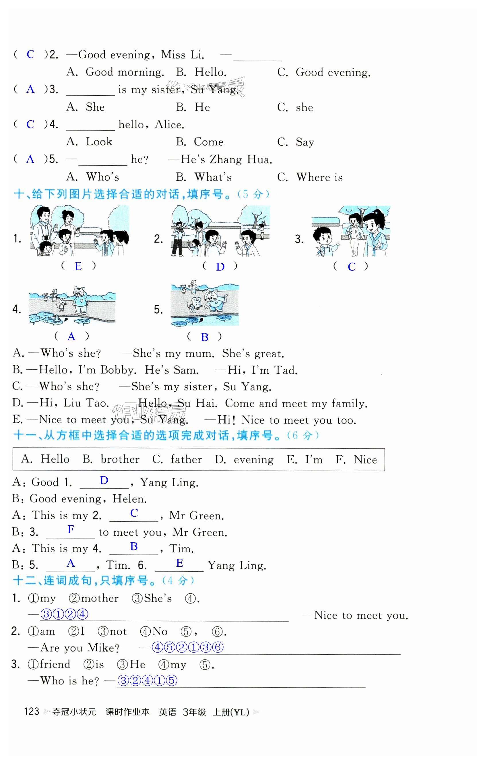 注:目前有些书本章节名称可能整理的还不是很完善,但都是按照顺序排列的,请同学们按照顺序仔细查找。练习册 2024年夺冠小状元课时作业本三年级英语上册译林版 答案主要是用来给同学们做完题方便对答案用的,请勿直接抄袭。