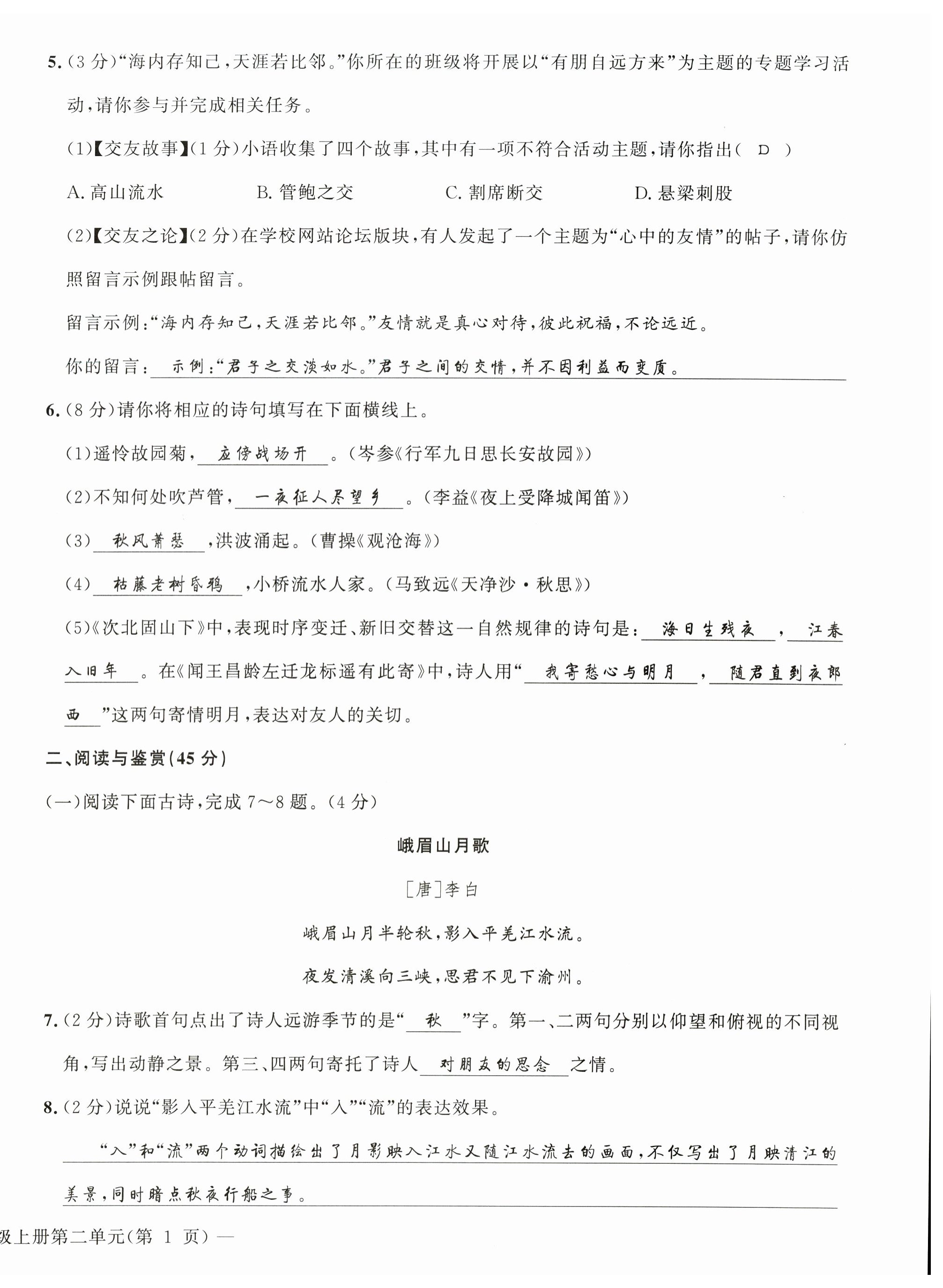 注:目前有些书本章节名称可能整理的还不是很完善,但都是按照顺序排列的,请同学们按照顺序仔细查找。练习册 2024年课堂巩固练习七年级语文上册人教版 答案主要是用来给同学们做完题方便对答案用的,请勿直接抄袭。