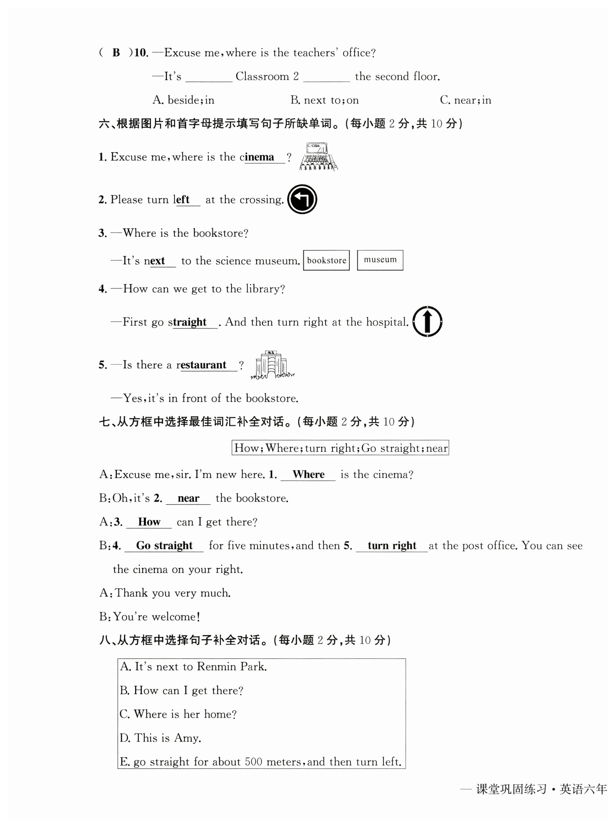 注:目前有些书本章节名称可能整理的还不是很完善,但都是按照顺序排列的,请同学们按照顺序仔细查找。练习册 2024年课堂巩固练习六年级英语上册人教版 答案主要是用来给同学们做完题方便对答案用的,请勿直接抄袭。