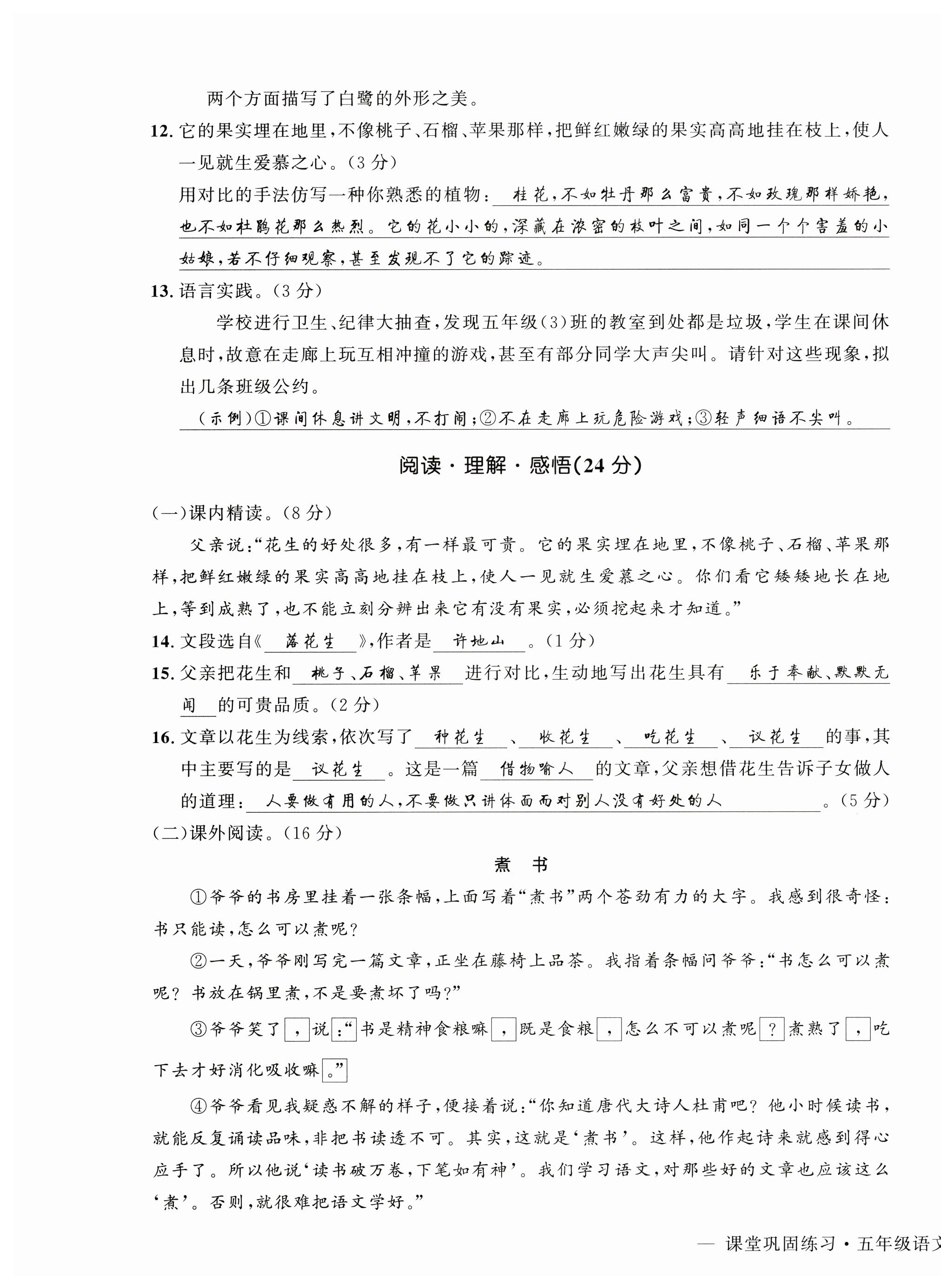 注:目前有些书本章节名称可能整理的还不是很完善,但都是按照顺序排列的,请同学们按照顺序仔细查找。练习册 2024年课堂巩固练习五年级语文上册人教版 答案主要是用来给同学们做完题方便对答案用的,请勿直接抄袭。