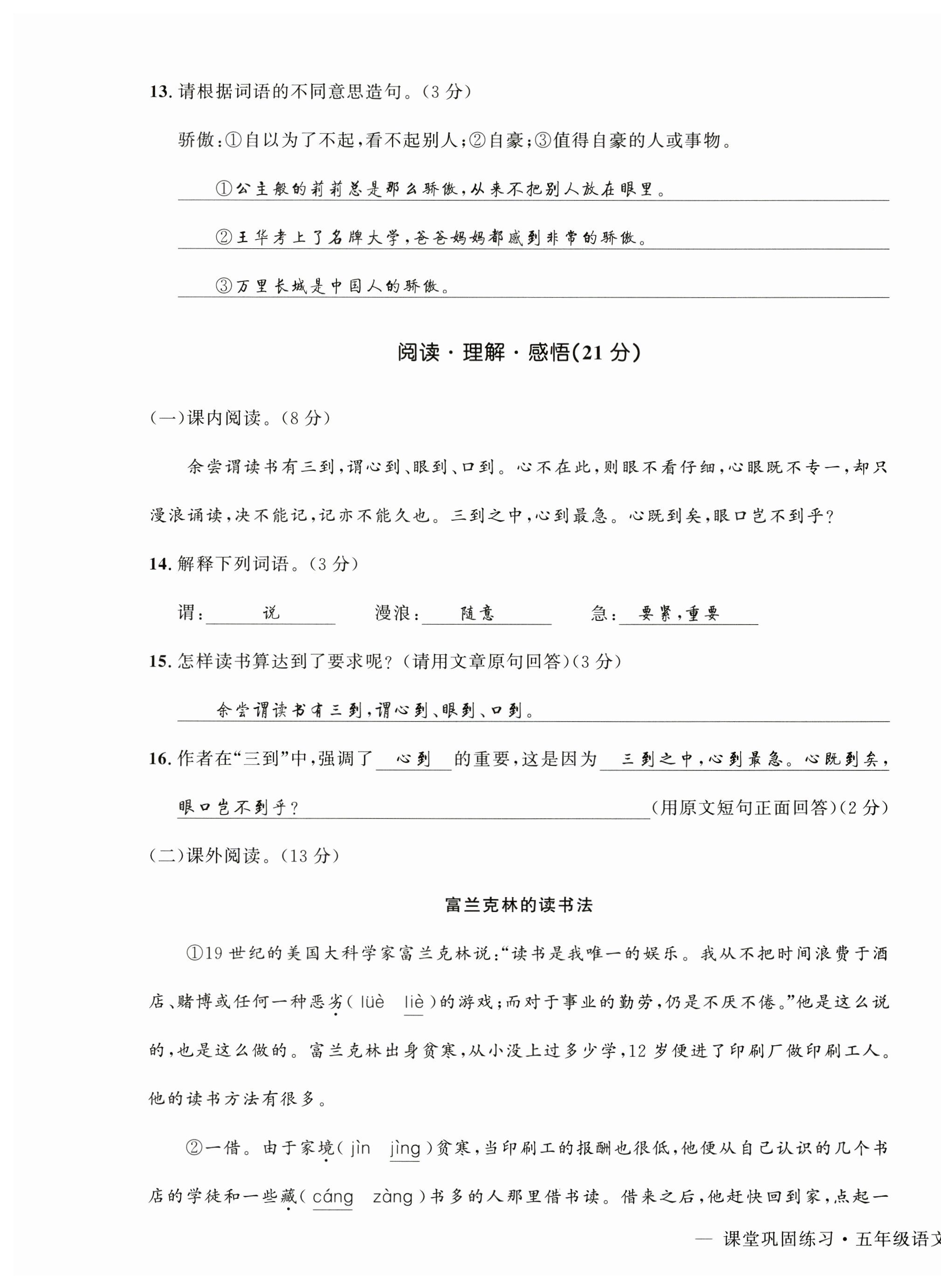 注:目前有些书本章节名称可能整理的还不是很完善,但都是按照顺序排列的,请同学们按照顺序仔细查找。练习册 2024年课堂巩固练习五年级语文上册人教版 答案主要是用来给同学们做完题方便对答案用的,请勿直接抄袭。
