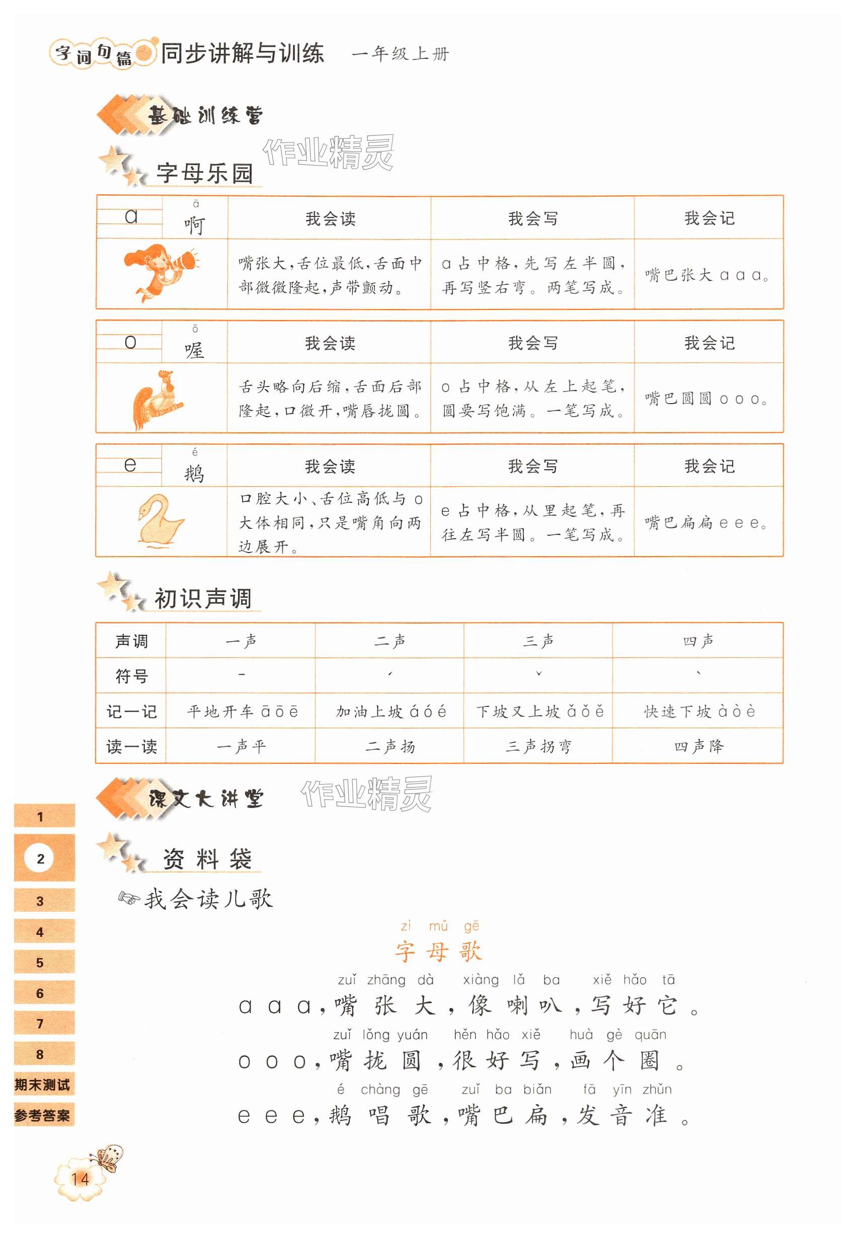 注:目前有些书本章节名称可能整理的还不是很完善,但都是按照顺序排列的,请同学们按照顺序仔细查找。练习册 2024年字词句篇同步讲解与训练一年级语文上册人教版 答案主要是用来给同学们做完题方便对答案用的,请勿直接抄袭。