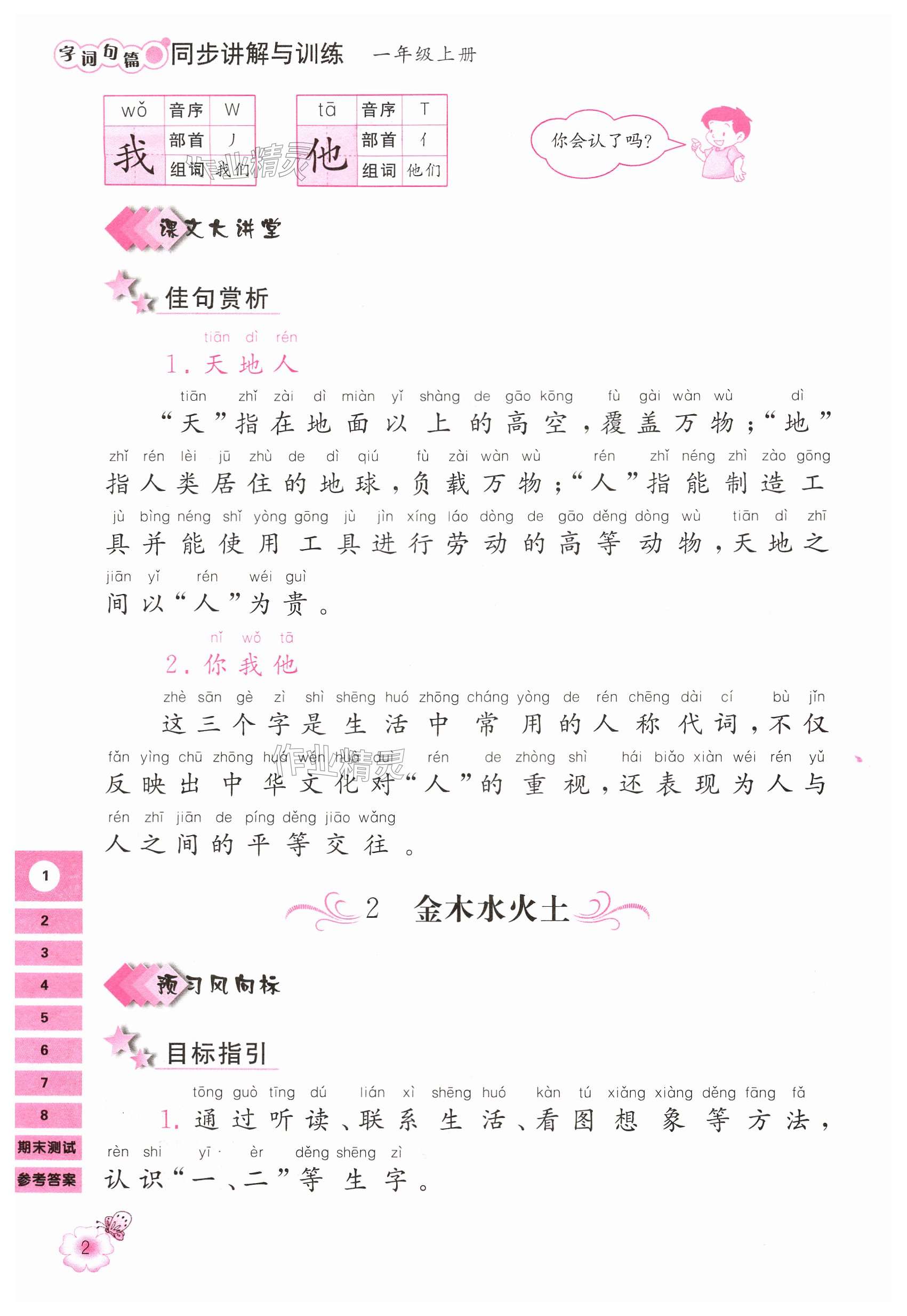 2024年字词句篇同步讲解与训练一年级语文上册人教版