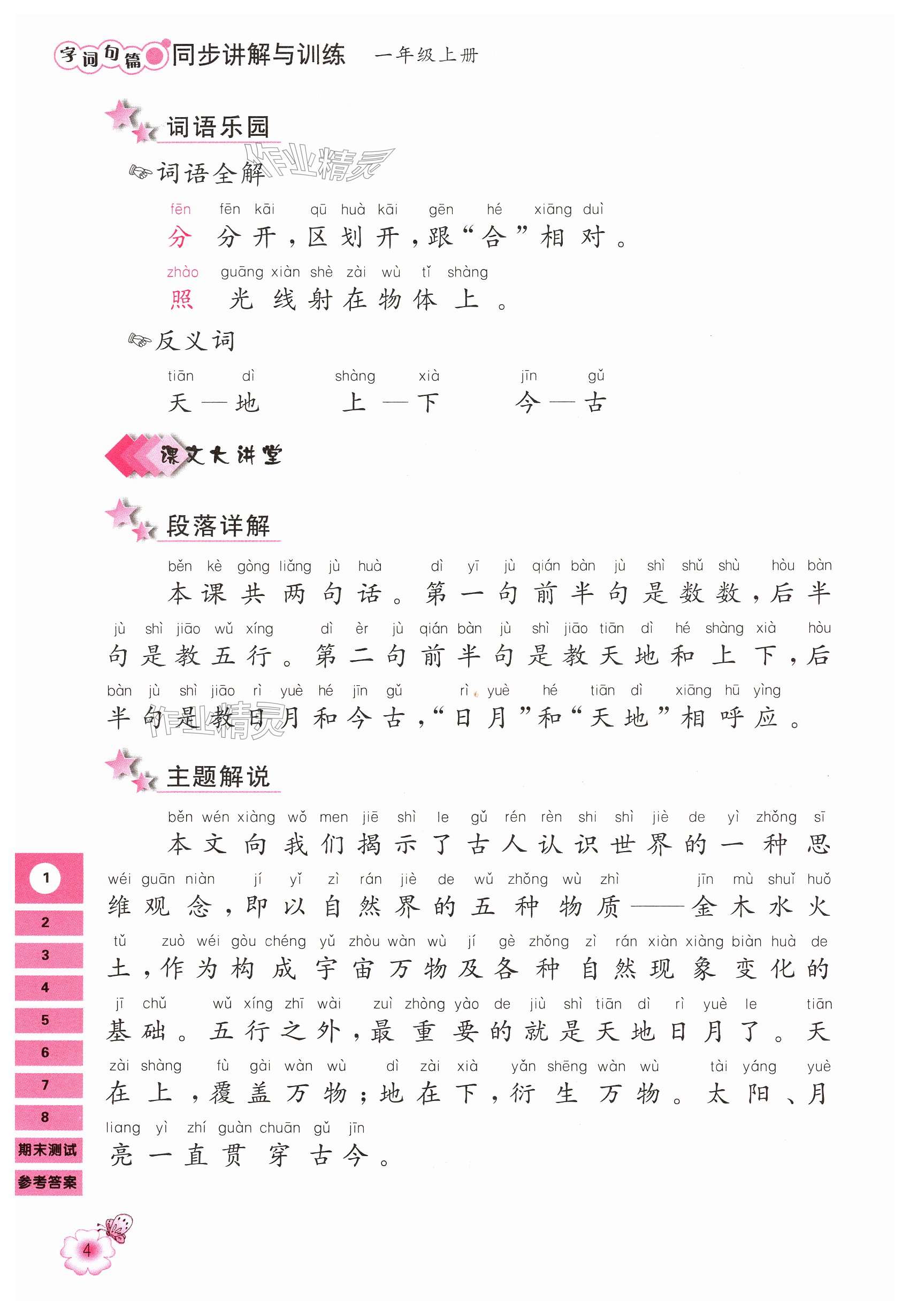2024年字词句篇同步讲解与训练一年级语文上册人教版