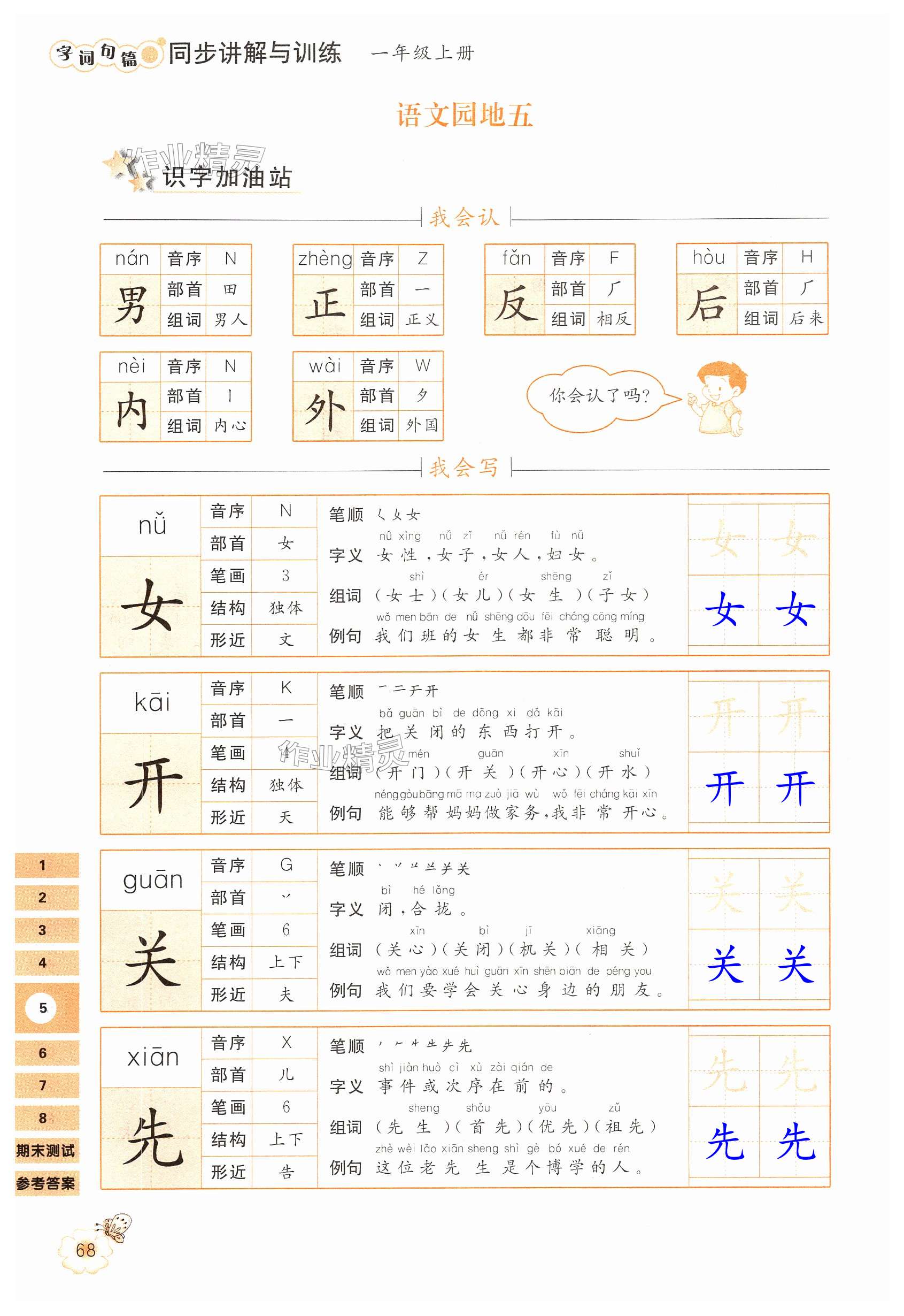 注:目前有些书本章节名称可能整理的还不是很完善,但都是按照顺序排列的,请同学们按照顺序仔细查找。练习册 2024年字词句篇同步讲解与训练一年级语文上册人教版 答案主要是用来给同学们做完题方便对答案用的,请勿直接抄袭。