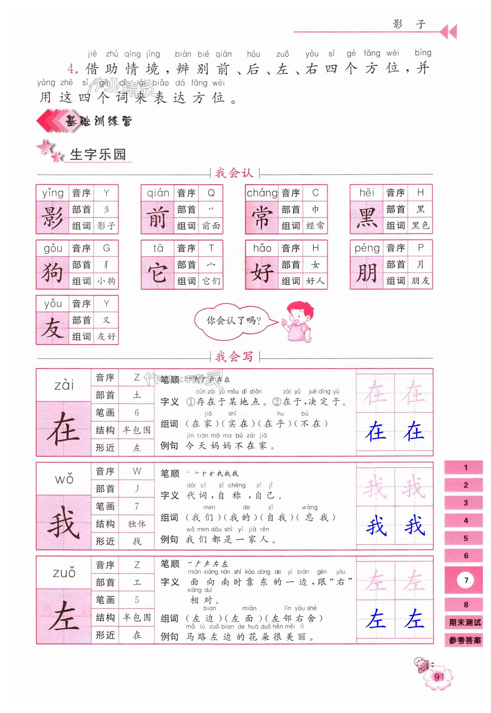 注:目前有些书本章节名称可能整理的还不是很完善,但都是按照顺序排列的,请同学们按照顺序仔细查找。练习册 2024年字词句篇同步讲解与训练一年级语文上册人教版 答案主要是用来给同学们做完题方便对答案用的,请勿直接抄袭。