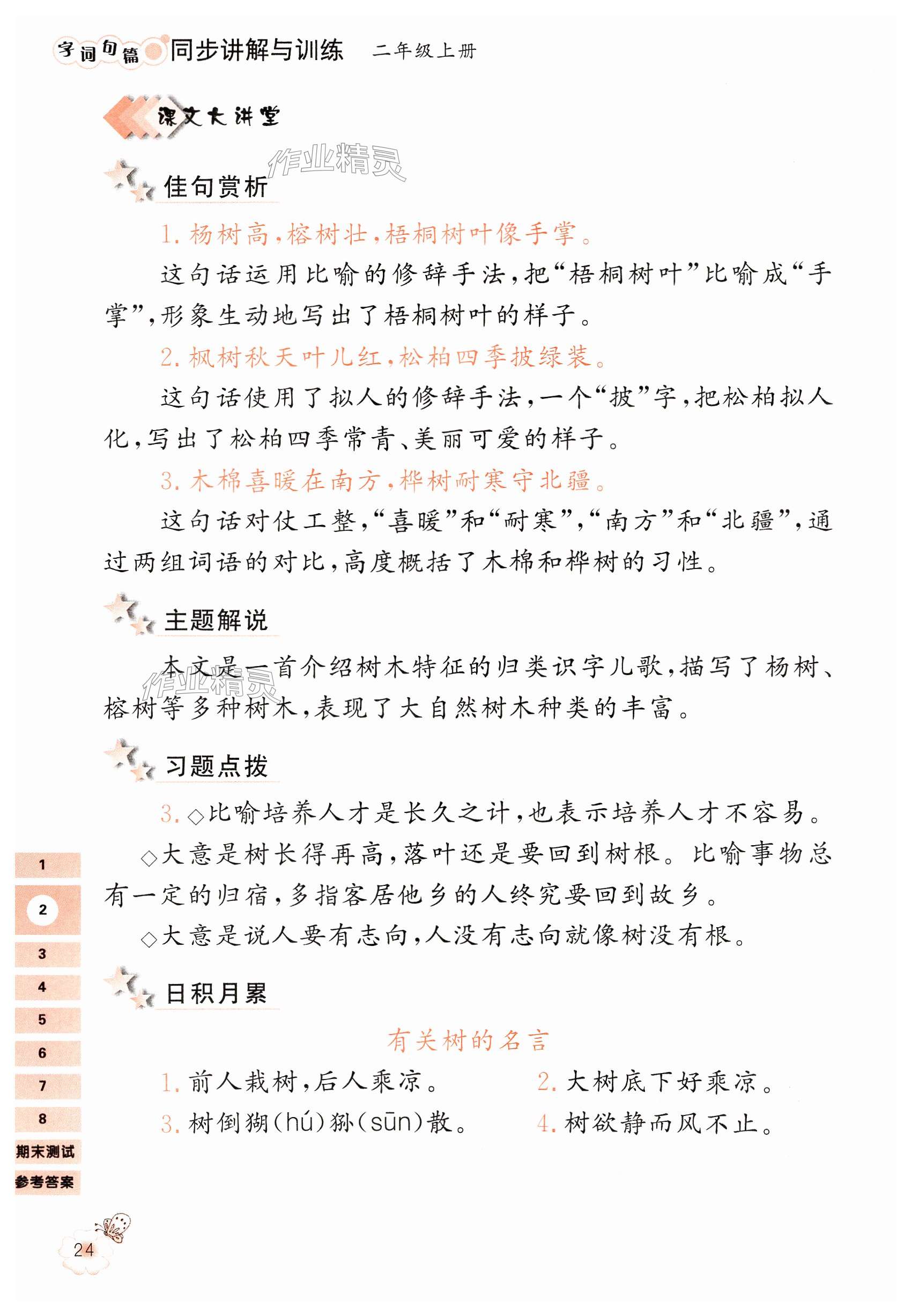 注:目前有些书本章节名称可能整理的还不是很完善,但都是按照顺序排列的,请同学们按照顺序仔细查找。练习册 2024年字词句篇同步讲解与训练二年级语文上册人教版 答案主要是用来给同学们做完题方便对答案用的,请勿直接抄袭。