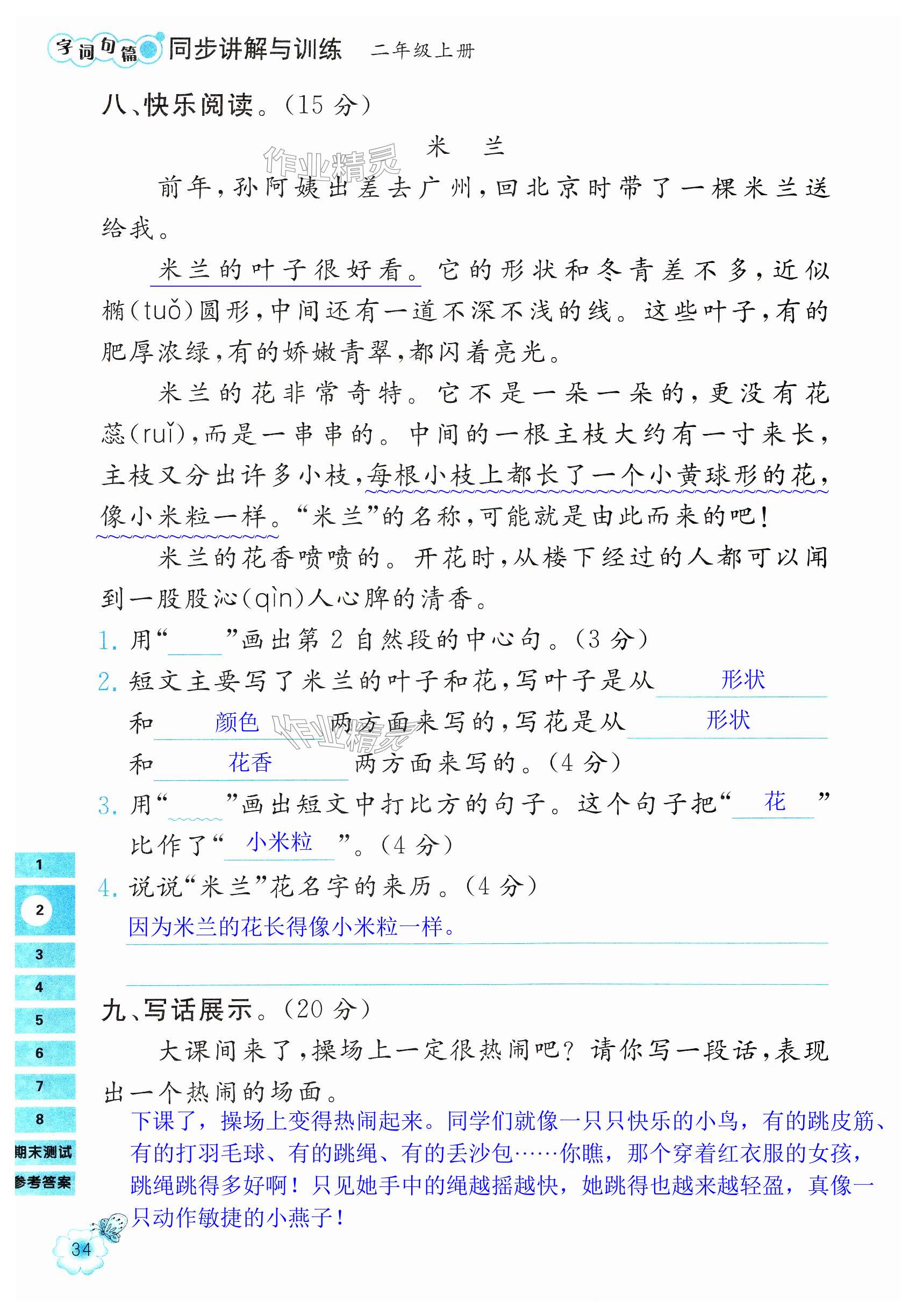 注:目前有些书本章节名称可能整理的还不是很完善,但都是按照顺序排列的,请同学们按照顺序仔细查找。练习册 2024年字词句篇同步讲解与训练二年级语文上册人教版 答案主要是用来给同学们做完题方便对答案用的,请勿直接抄袭。