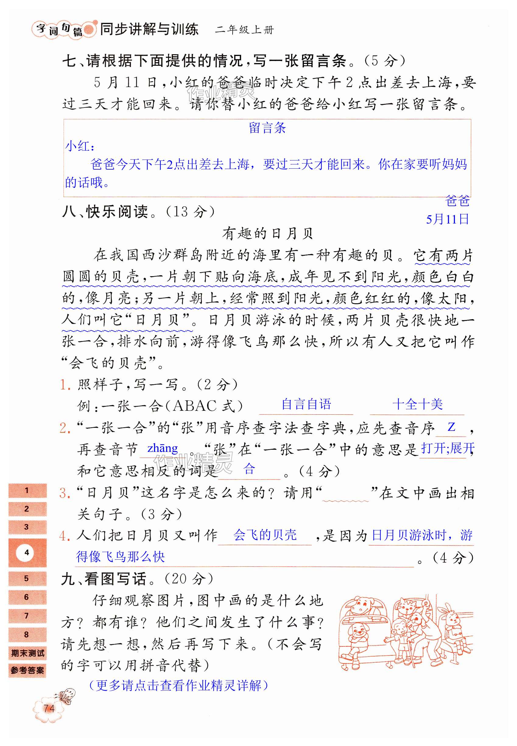 注:目前有些书本章节名称可能整理的还不是很完善,但都是按照顺序排列的,请同学们按照顺序仔细查找。练习册 2024年字词句篇同步讲解与训练二年级语文上册人教版 答案主要是用来给同学们做完题方便对答案用的,请勿直接抄袭。
