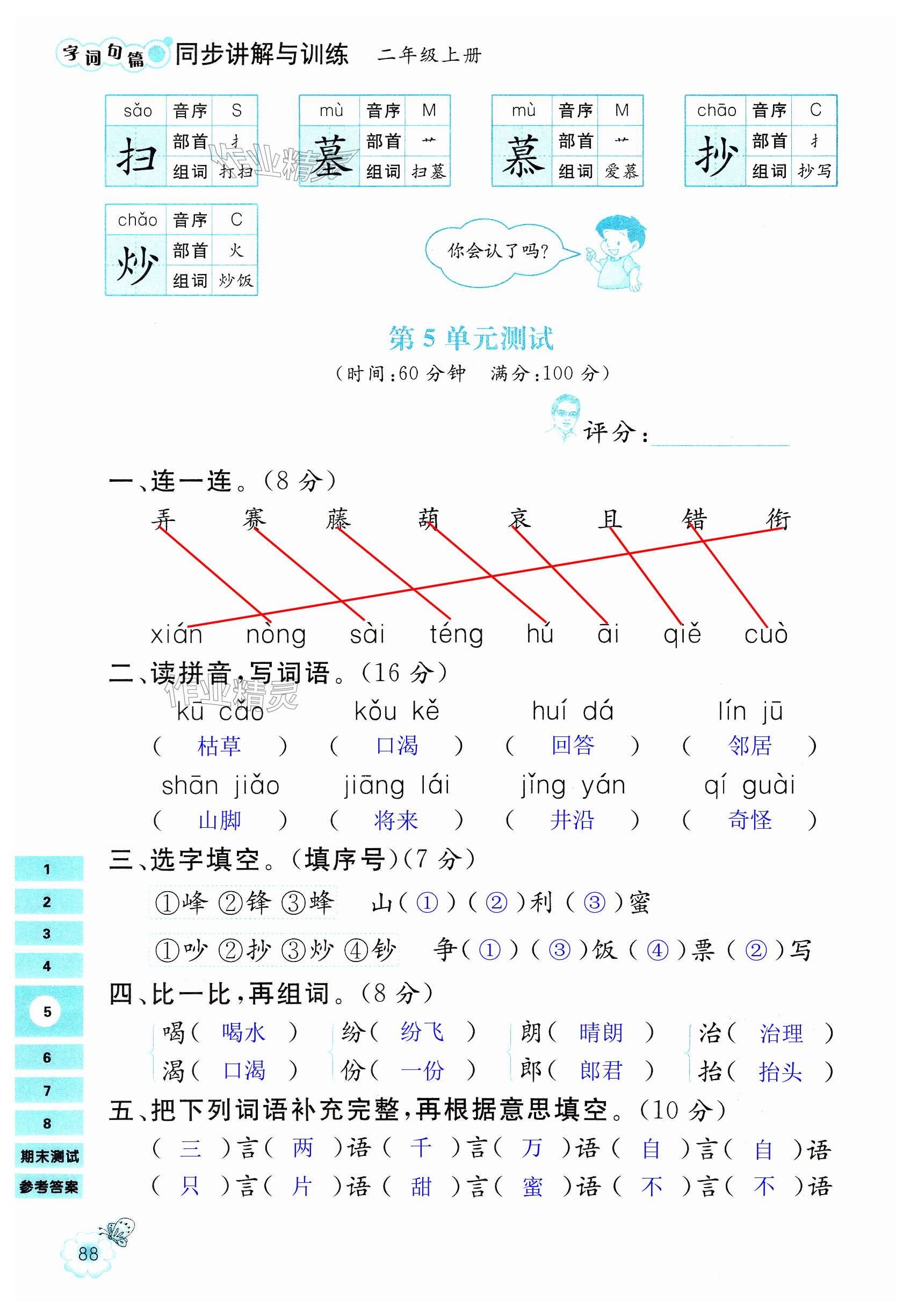 注:目前有些书本章节名称可能整理的还不是很完善,但都是按照顺序排列的,请同学们按照顺序仔细查找。练习册 2024年字词句篇同步讲解与训练二年级语文上册人教版 答案主要是用来给同学们做完题方便对答案用的,请勿直接抄袭。