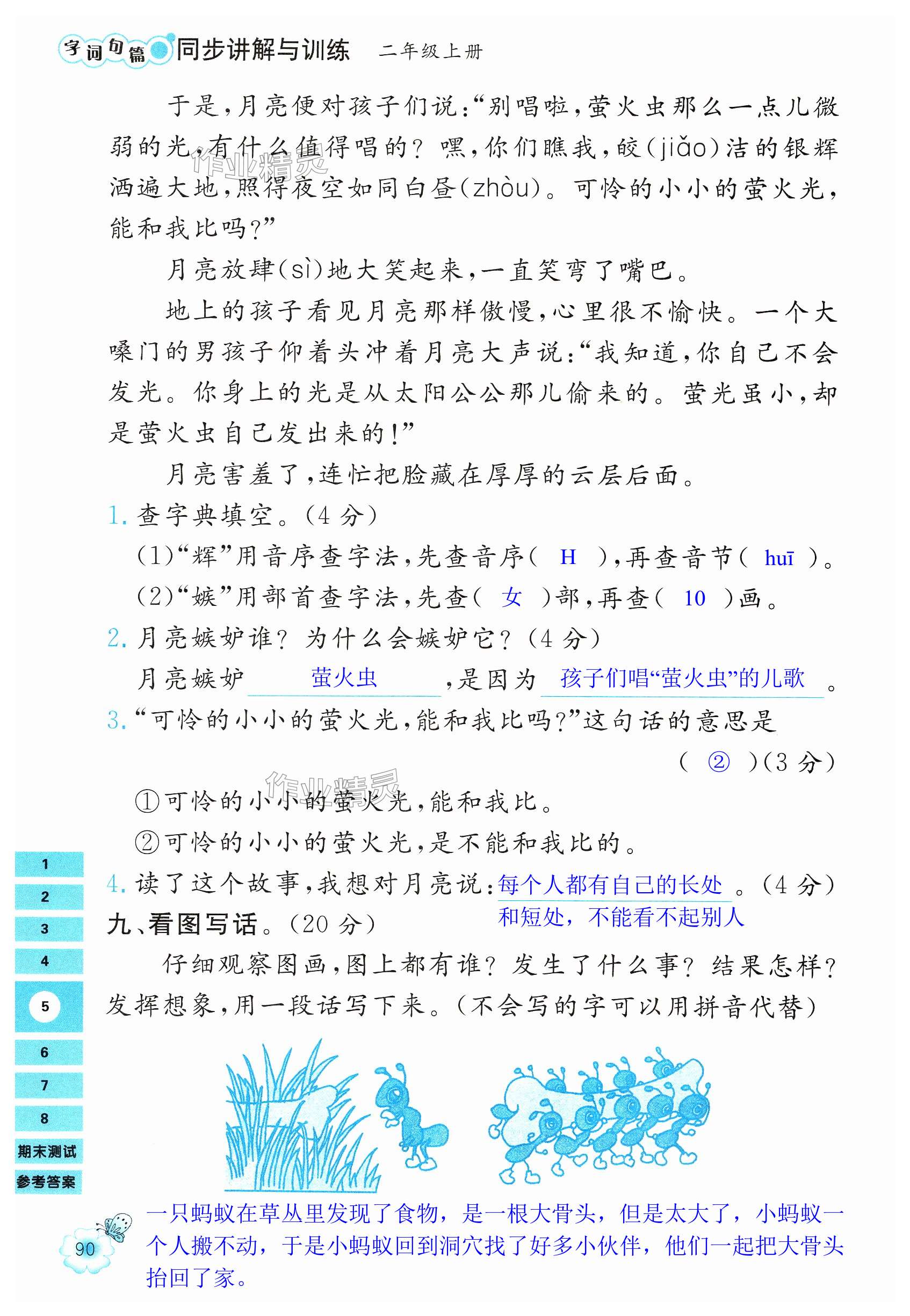注:目前有些书本章节名称可能整理的还不是很完善,但都是按照顺序排列的,请同学们按照顺序仔细查找。练习册 2024年字词句篇同步讲解与训练二年级语文上册人教版 答案主要是用来给同学们做完题方便对答案用的,请勿直接抄袭。