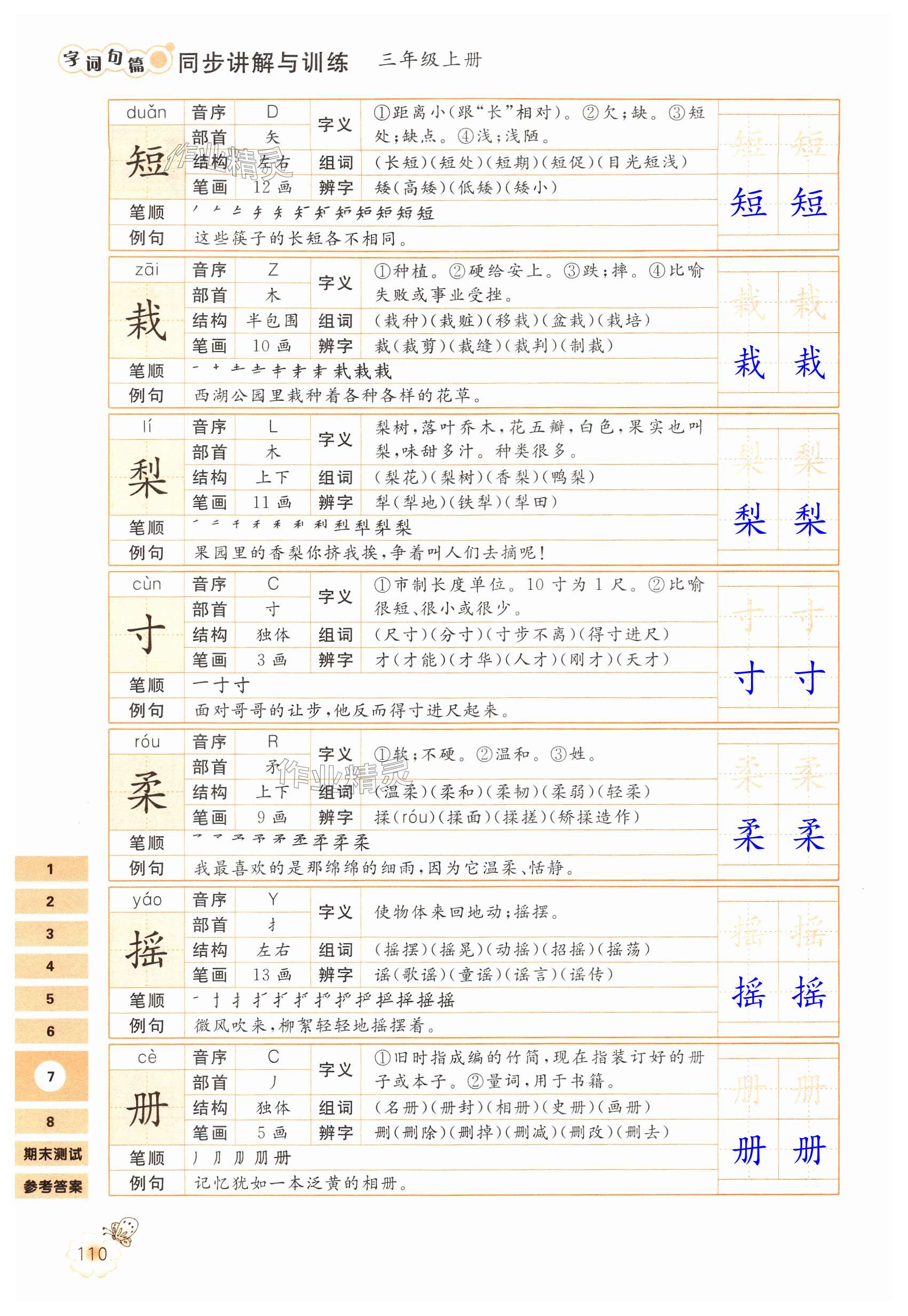 注:目前有些书本章节名称可能整理的还不是很完善,但都是按照顺序排列的,请同学们按照顺序仔细查找。练习册 2024年字词句篇同步讲解与训练三年级语文上册人教版 答案主要是用来给同学们做完题方便对答案用的,请勿直接抄袭。