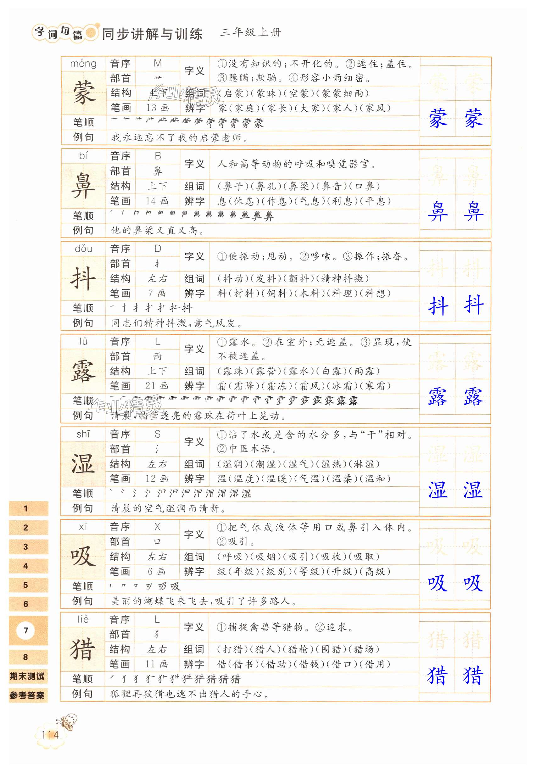 注:目前有些书本章节名称可能整理的还不是很完善,但都是按照顺序排列的,请同学们按照顺序仔细查找。练习册 2024年字词句篇同步讲解与训练三年级语文上册人教版 答案主要是用来给同学们做完题方便对答案用的,请勿直接抄袭。