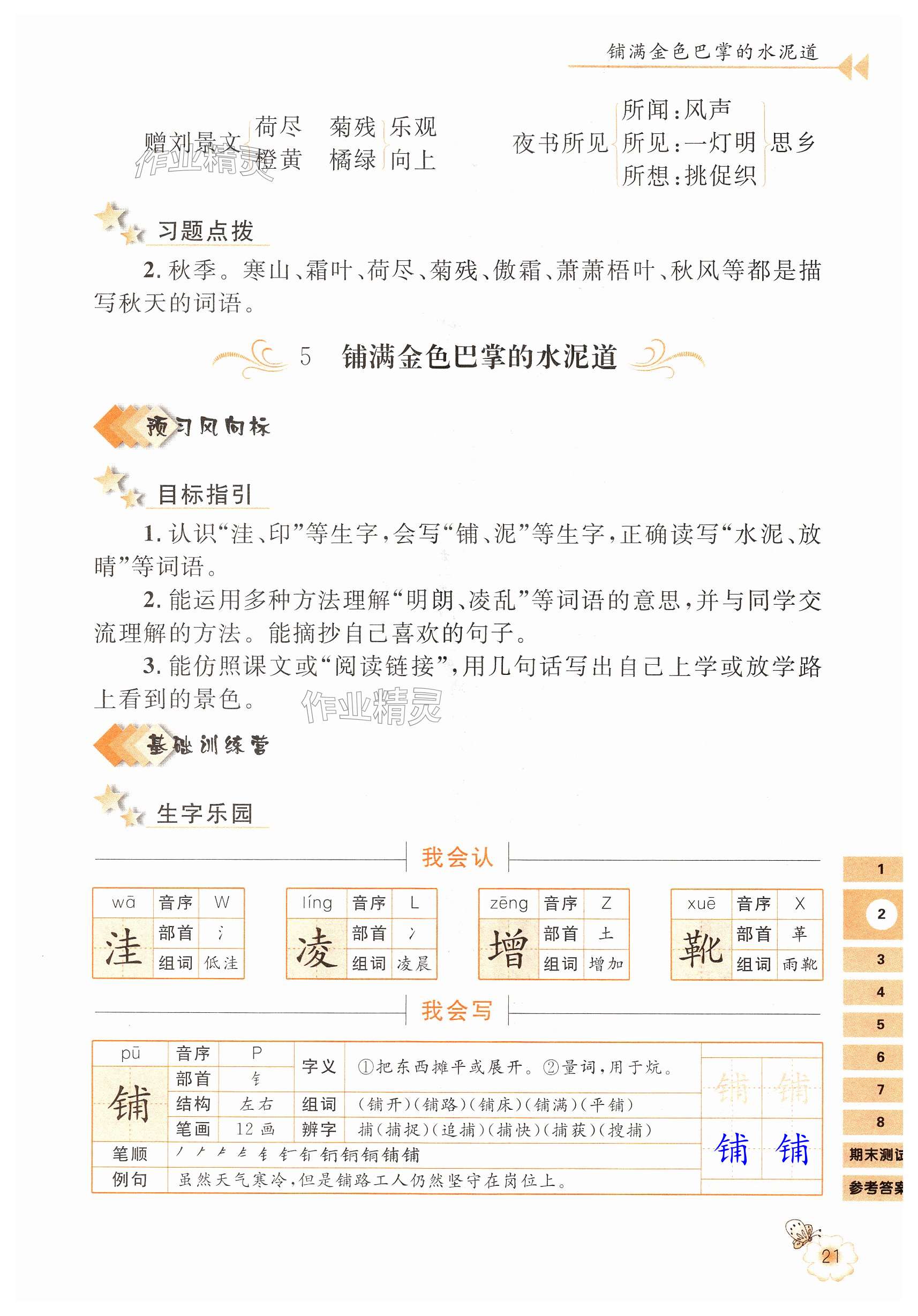 注:目前有些书本章节名称可能整理的还不是很完善,但都是按照顺序排列的,请同学们按照顺序仔细查找。练习册 2024年字词句篇同步讲解与训练三年级语文上册人教版 答案主要是用来给同学们做完题方便对答案用的,请勿直接抄袭。
