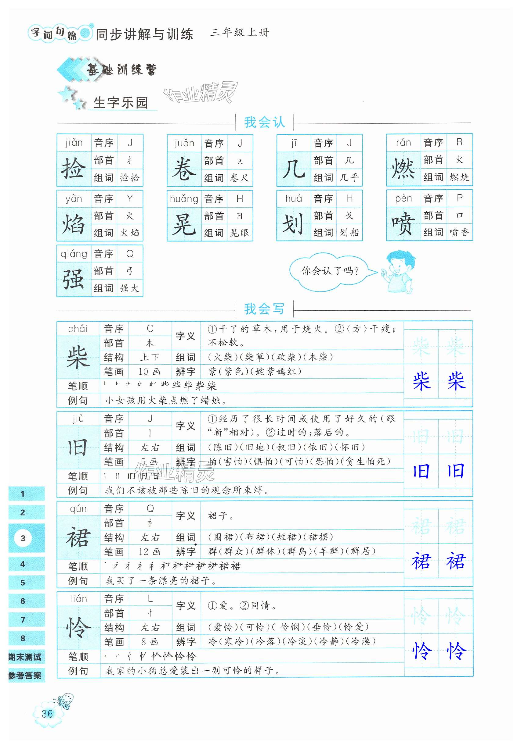 注:目前有些书本章节名称可能整理的还不是很完善,但都是按照顺序排列的,请同学们按照顺序仔细查找。练习册 2024年字词句篇同步讲解与训练三年级语文上册人教版 答案主要是用来给同学们做完题方便对答案用的,请勿直接抄袭。