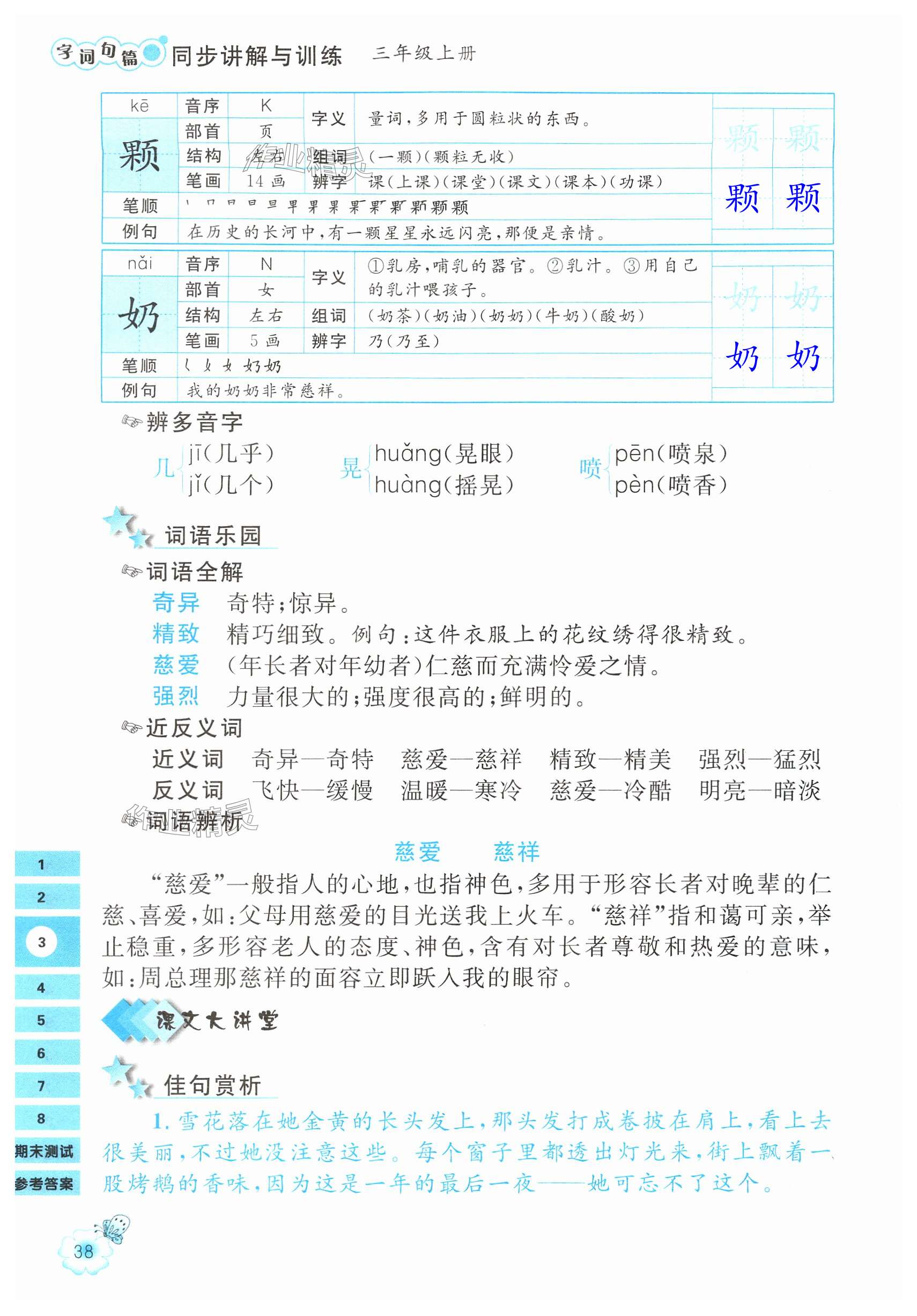 2024年字词句篇同步讲解与训练三年级语文上册人教版