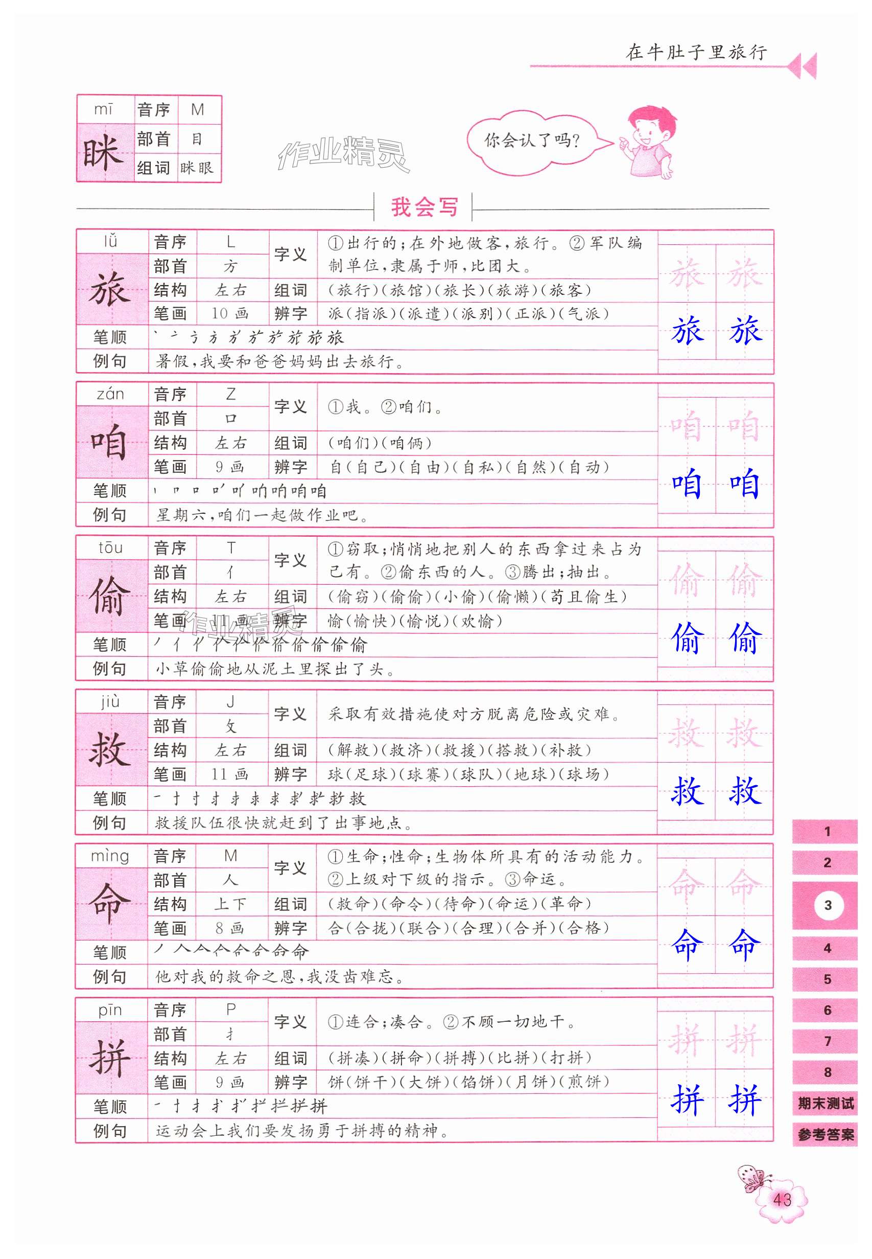 注:目前有些书本章节名称可能整理的还不是很完善,但都是按照顺序排列的,请同学们按照顺序仔细查找。练习册 2024年字词句篇同步讲解与训练三年级语文上册人教版 答案主要是用来给同学们做完题方便对答案用的,请勿直接抄袭。