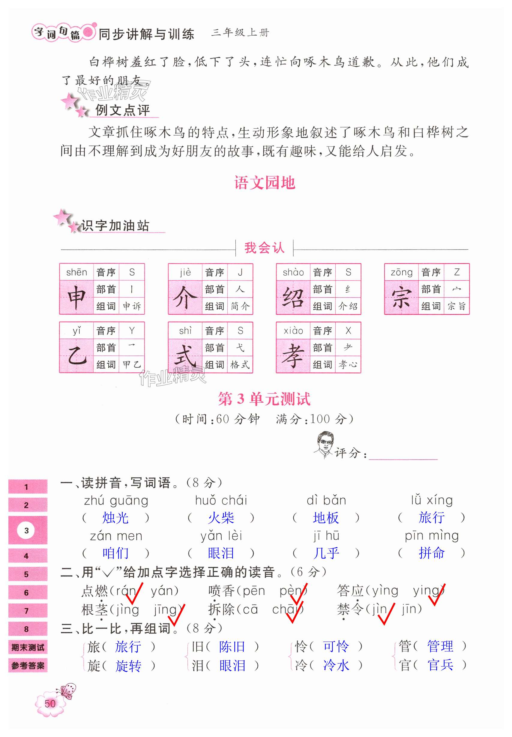 注:目前有些书本章节名称可能整理的还不是很完善,但都是按照顺序排列的,请同学们按照顺序仔细查找。练习册 2024年字词句篇同步讲解与训练三年级语文上册人教版 答案主要是用来给同学们做完题方便对答案用的,请勿直接抄袭。