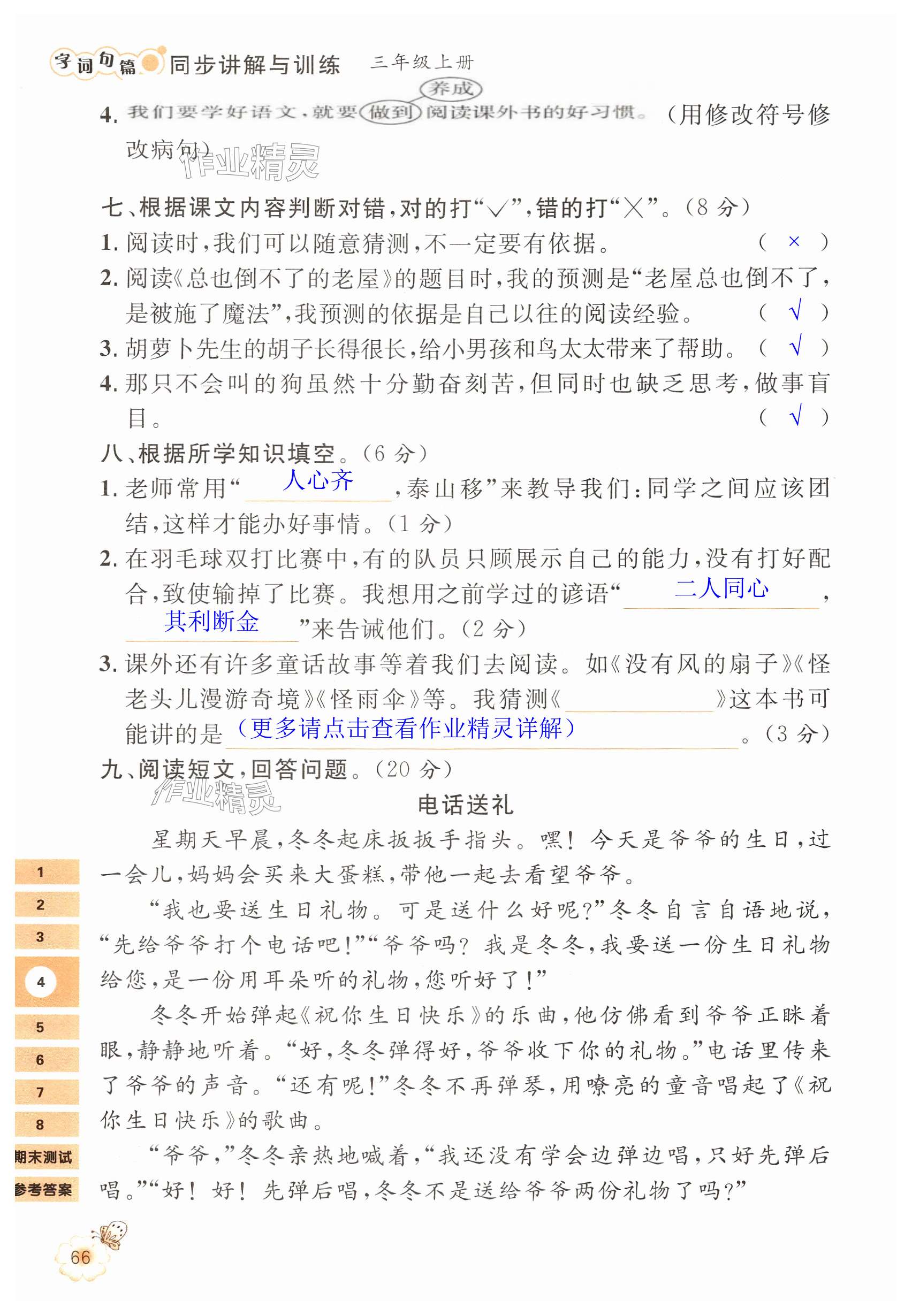 注:目前有些书本章节名称可能整理的还不是很完善,但都是按照顺序排列的,请同学们按照顺序仔细查找。练习册 2024年字词句篇同步讲解与训练三年级语文上册人教版 答案主要是用来给同学们做完题方便对答案用的,请勿直接抄袭。