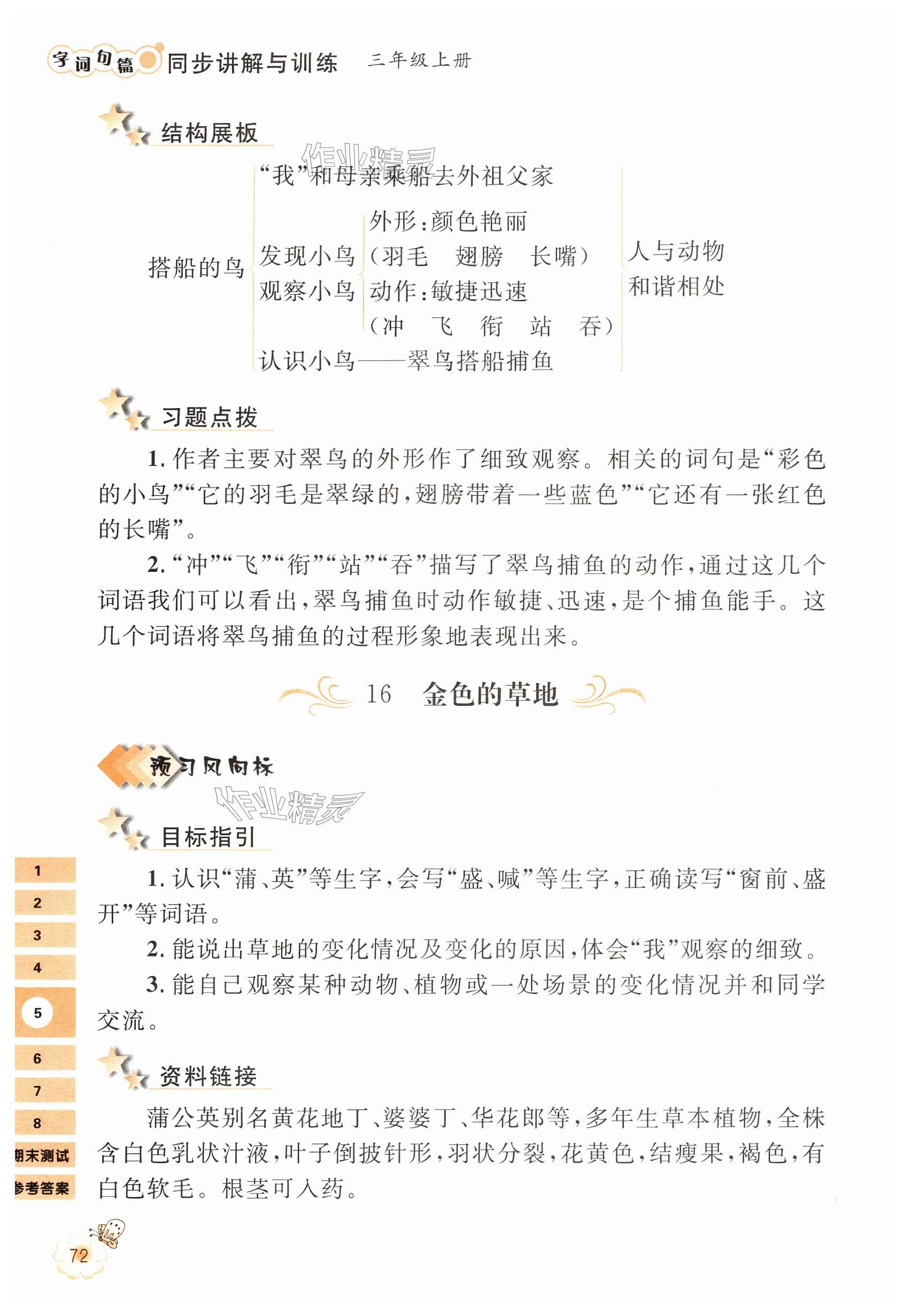 注:目前有些书本章节名称可能整理的还不是很完善,但都是按照顺序排列的,请同学们按照顺序仔细查找。练习册 2024年字词句篇同步讲解与训练三年级语文上册人教版 答案主要是用来给同学们做完题方便对答案用的,请勿直接抄袭。