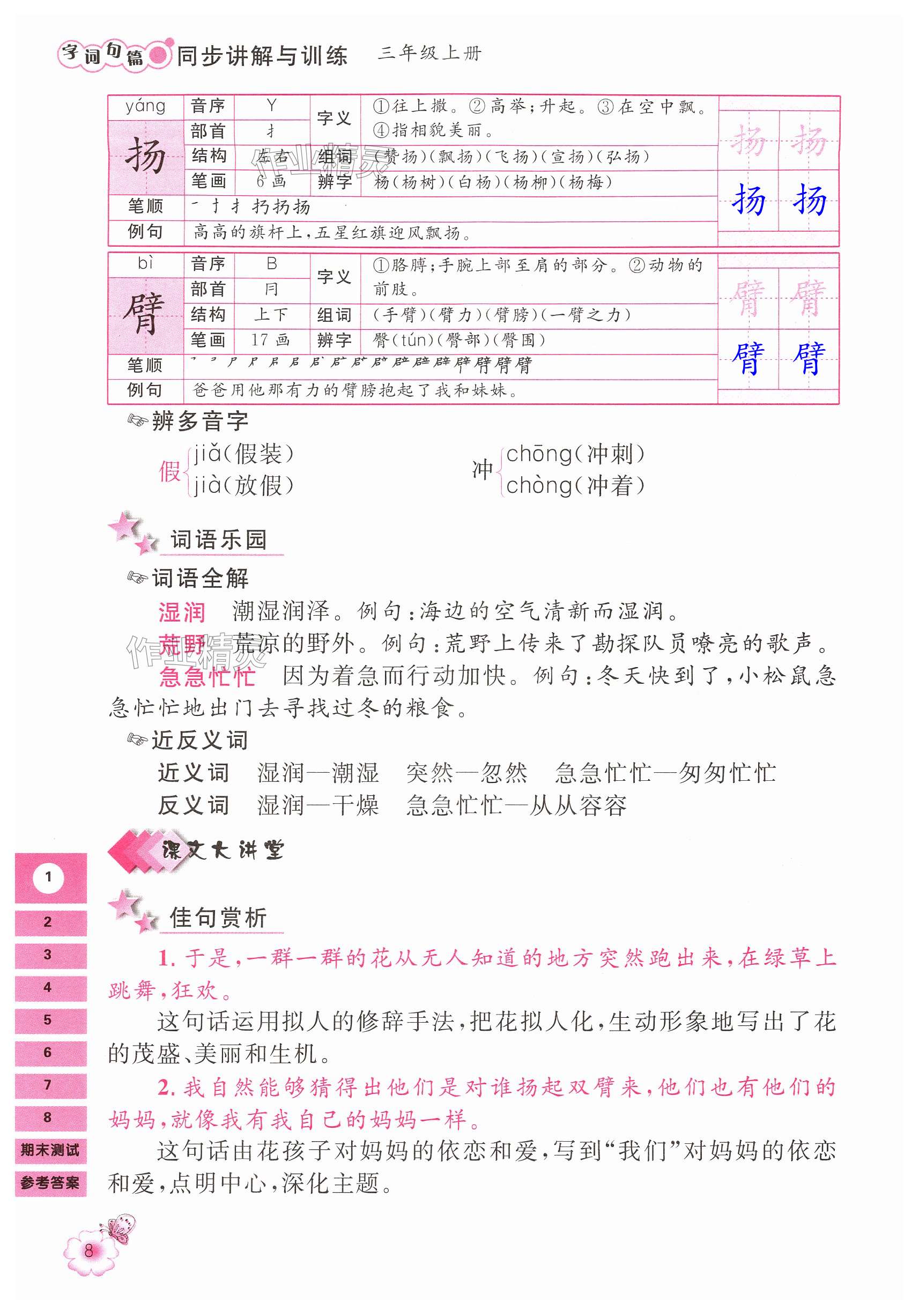 注:目前有些书本章节名称可能整理的还不是很完善,但都是按照顺序排列的,请同学们按照顺序仔细查找。练习册 2024年字词句篇同步讲解与训练三年级语文上册人教版 答案主要是用来给同学们做完题方便对答案用的,请勿直接抄袭。