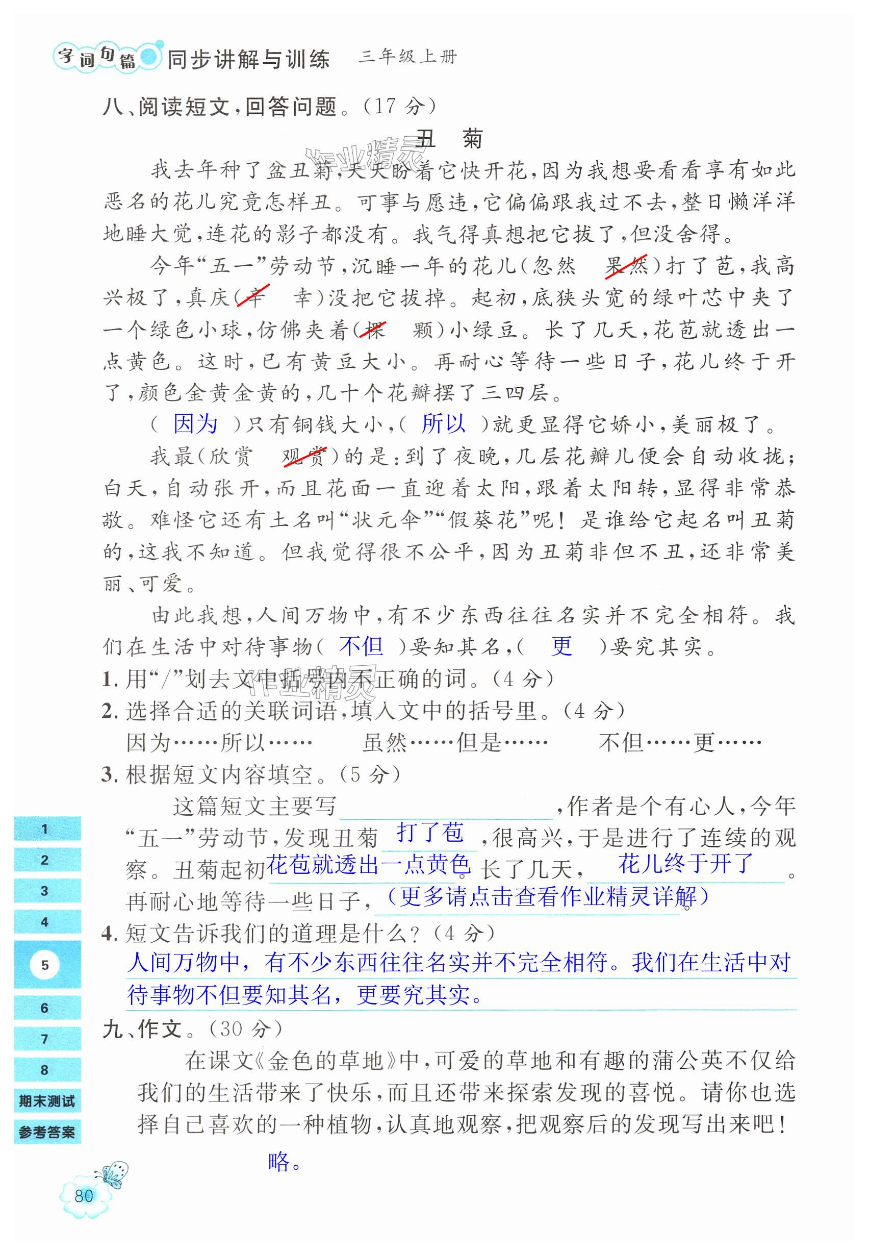 注:目前有些书本章节名称可能整理的还不是很完善,但都是按照顺序排列的,请同学们按照顺序仔细查找。练习册 2024年字词句篇同步讲解与训练三年级语文上册人教版 答案主要是用来给同学们做完题方便对答案用的,请勿直接抄袭。