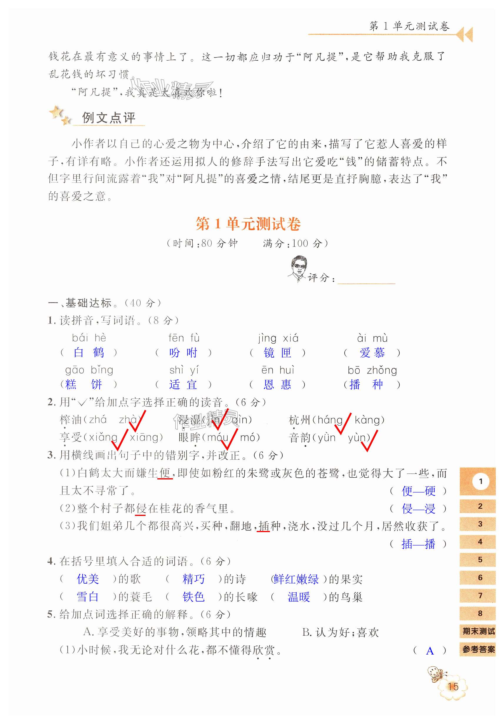 注:目前有些书本章节名称可能整理的还不是很完善,但都是按照顺序排列的,请同学们按照顺序仔细查找。练习册 2024年字词句篇同步讲解与训练五年级语文上册人教版 答案主要是用来给同学们做完题方便对答案用的,请勿直接抄袭。