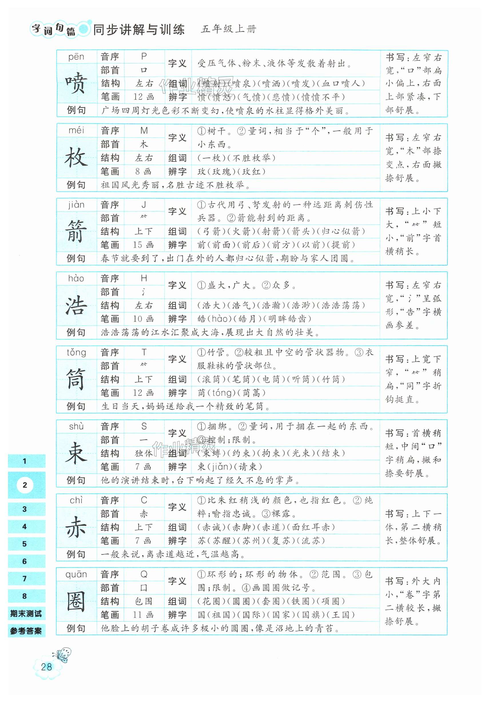 注:目前有些书本章节名称可能整理的还不是很完善,但都是按照顺序排列的,请同学们按照顺序仔细查找。练习册 2024年字词句篇同步讲解与训练五年级语文上册人教版 答案主要是用来给同学们做完题方便对答案用的,请勿直接抄袭。
