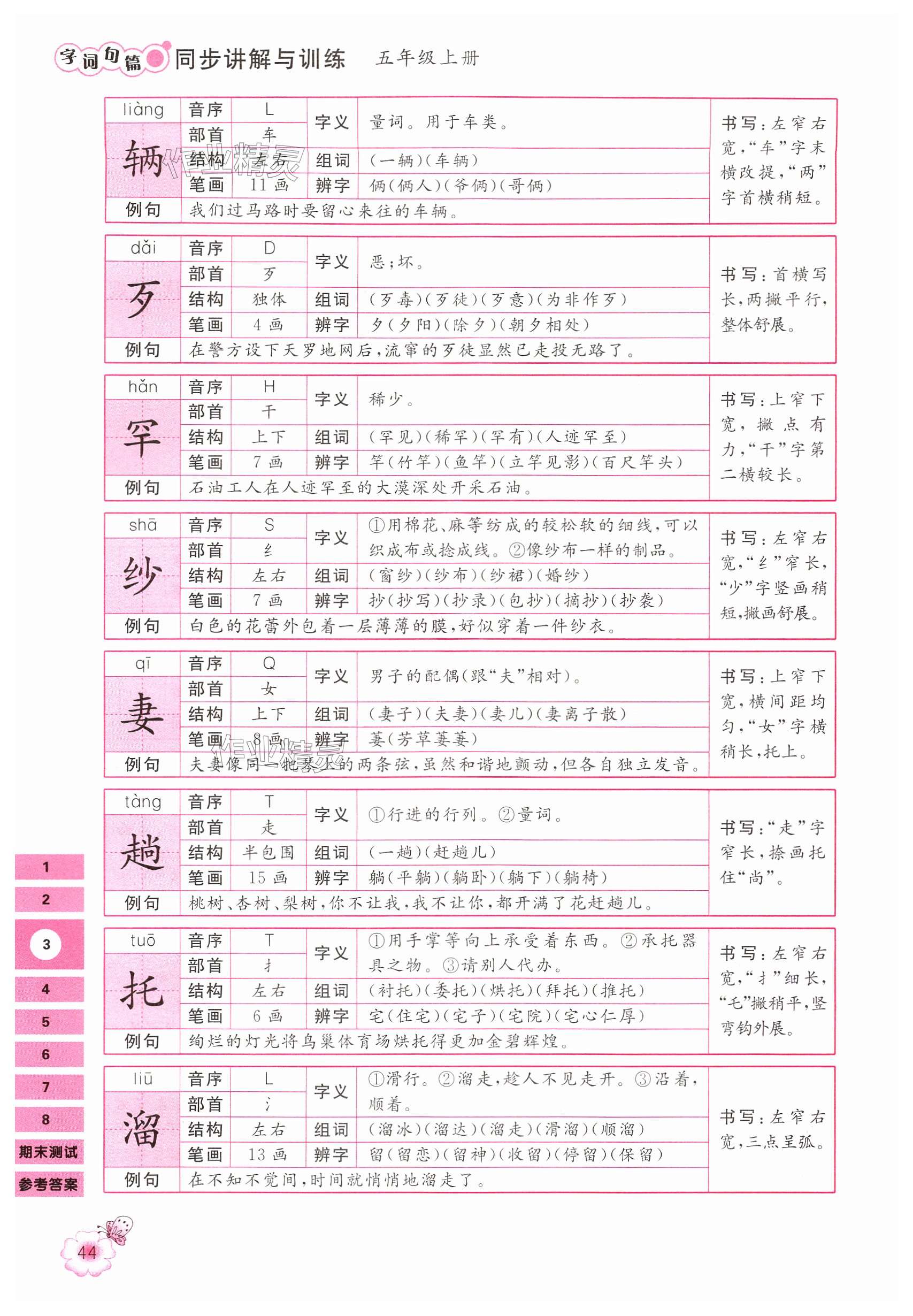注:目前有些书本章节名称可能整理的还不是很完善,但都是按照顺序排列的,请同学们按照顺序仔细查找。练习册 2024年字词句篇同步讲解与训练五年级语文上册人教版 答案主要是用来给同学们做完题方便对答案用的,请勿直接抄袭。