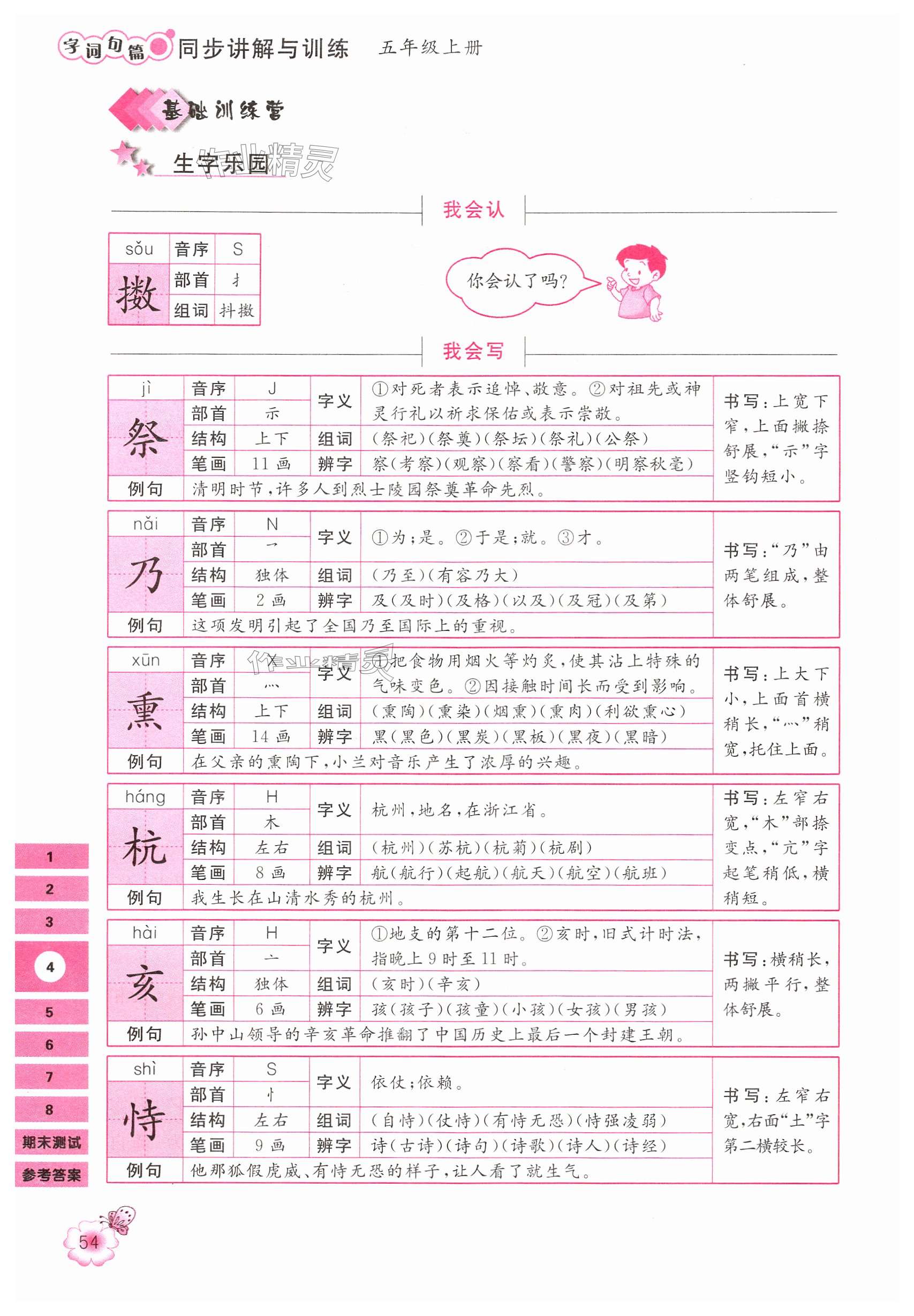 注:目前有些书本章节名称可能整理的还不是很完善,但都是按照顺序排列的,请同学们按照顺序仔细查找。练习册 2024年字词句篇同步讲解与训练五年级语文上册人教版 答案主要是用来给同学们做完题方便对答案用的,请勿直接抄袭。