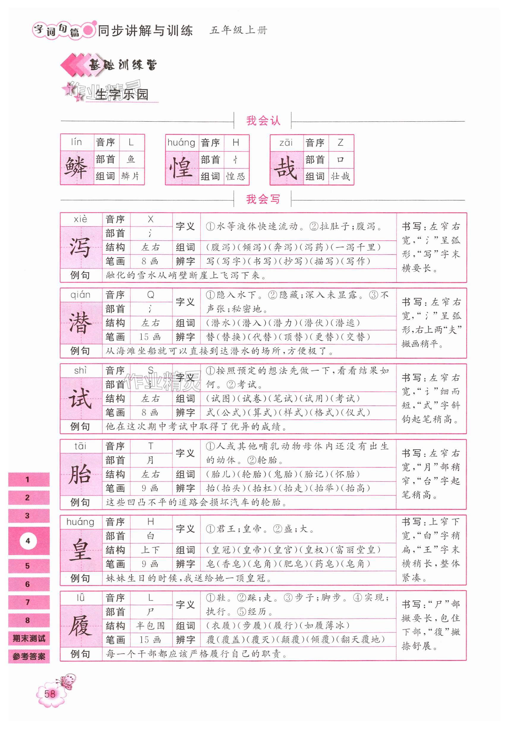 注:目前有些书本章节名称可能整理的还不是很完善,但都是按照顺序排列的,请同学们按照顺序仔细查找。练习册 2024年字词句篇同步讲解与训练五年级语文上册人教版 答案主要是用来给同学们做完题方便对答案用的,请勿直接抄袭。