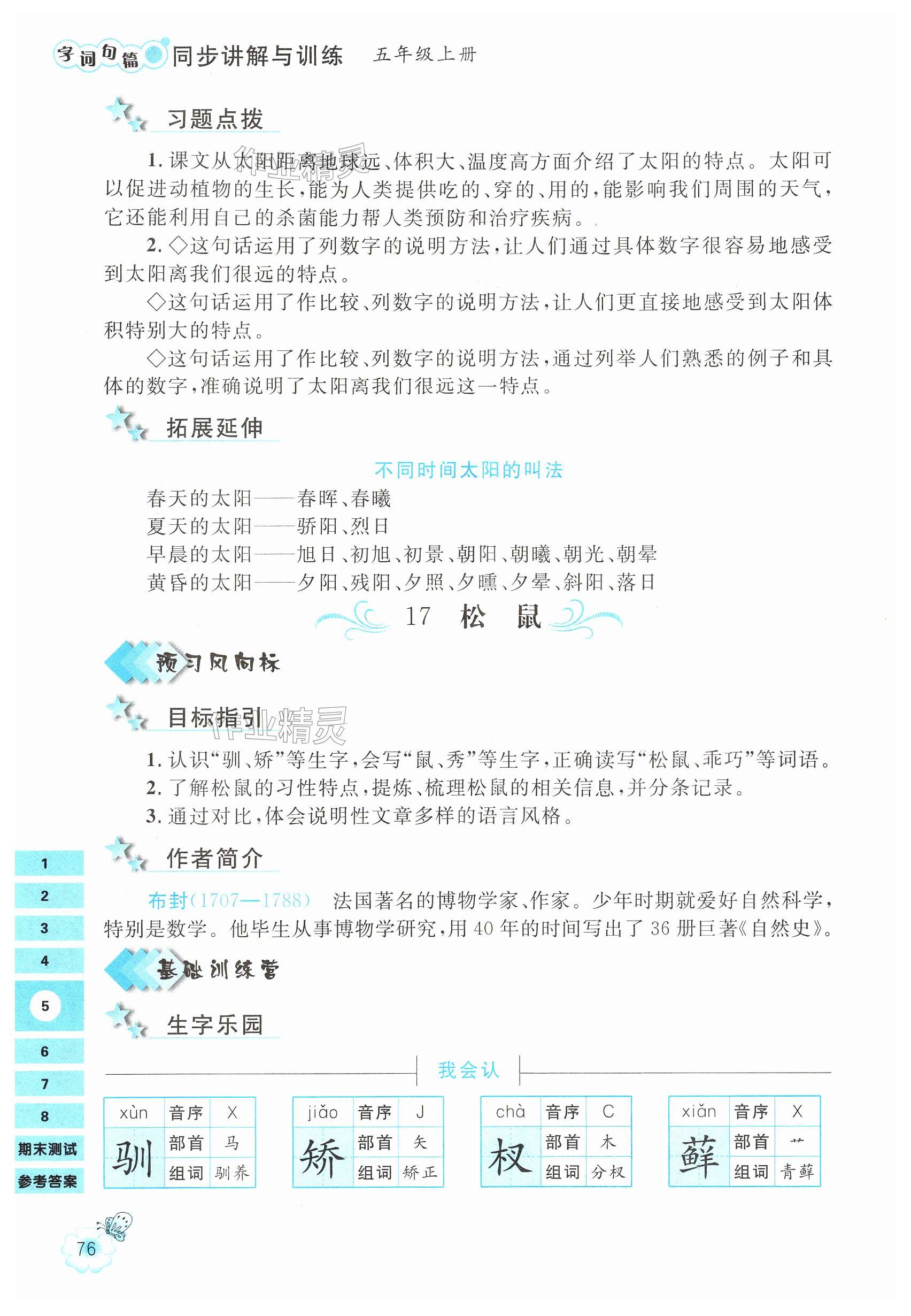 注:目前有些书本章节名称可能整理的还不是很完善,但都是按照顺序排列的,请同学们按照顺序仔细查找。练习册 2024年字词句篇同步讲解与训练五年级语文上册人教版 答案主要是用来给同学们做完题方便对答案用的,请勿直接抄袭。