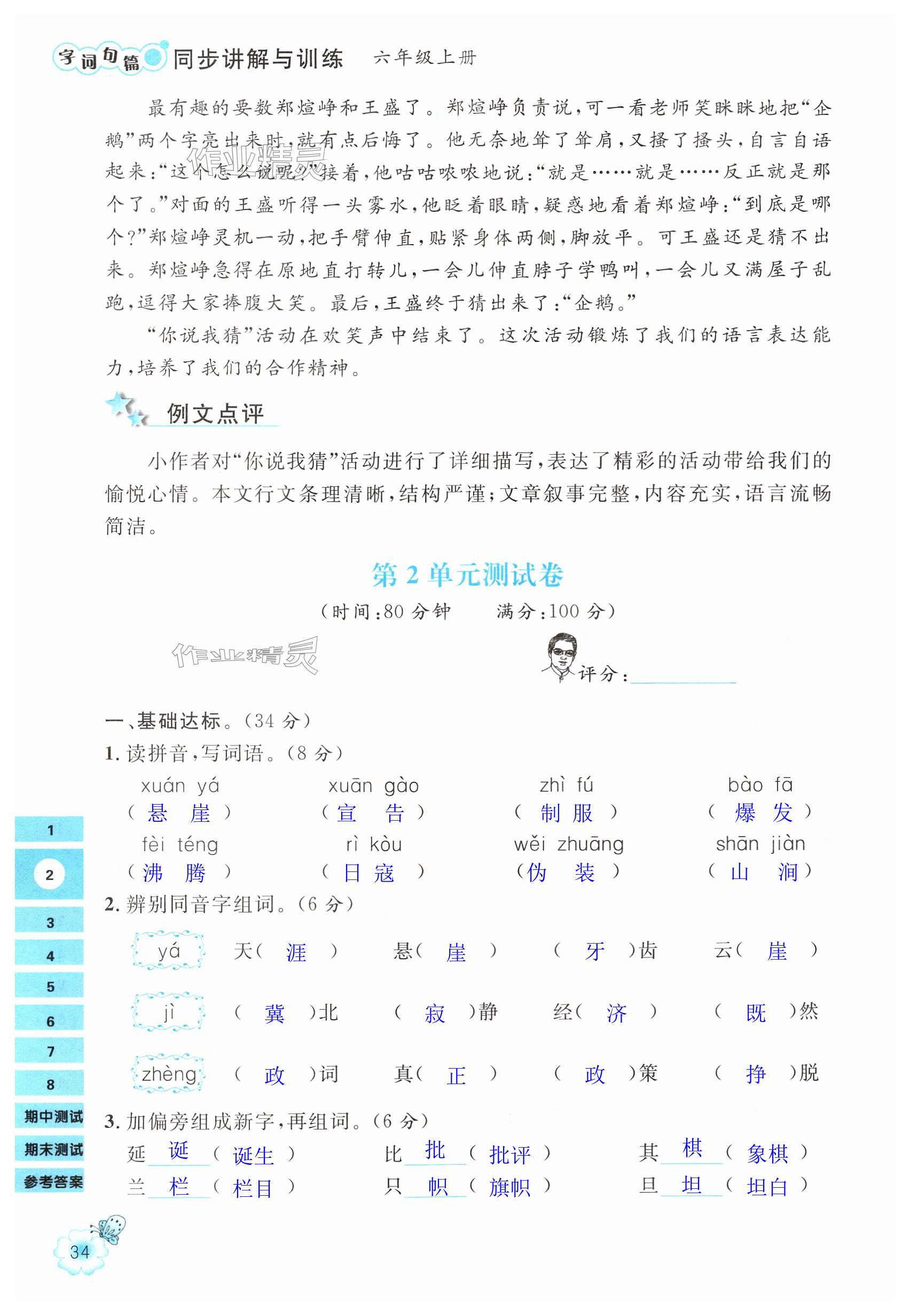 注:目前有些书本章节名称可能整理的还不是很完善,但都是按照顺序排列的,请同学们按照顺序仔细查找。练习册 2024年字词句篇同步讲解与训练六年级语文上册人教版 答案主要是用来给同学们做完题方便对答案用的,请勿直接抄袭。