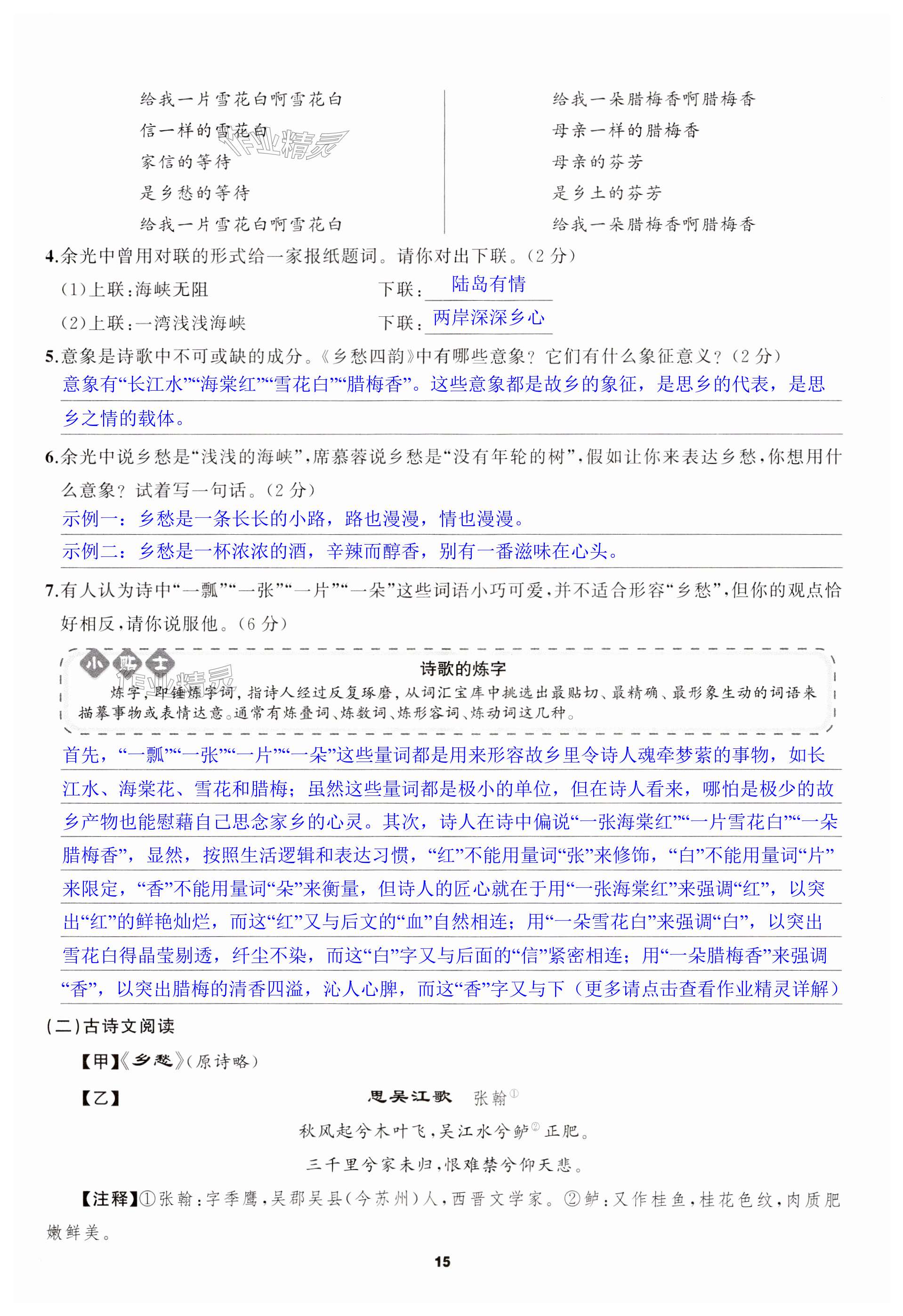 注:目前有些书本章节名称可能整理的还不是很完善,但都是按照顺序排列的,请同学们按照顺序仔细查找。练习册 2024年语文花开天津科学技术出版社九年级语文全一册人教版湖北专版 答案主要是用来给同学们做完题方便对答案用的,请勿直接抄袭。
