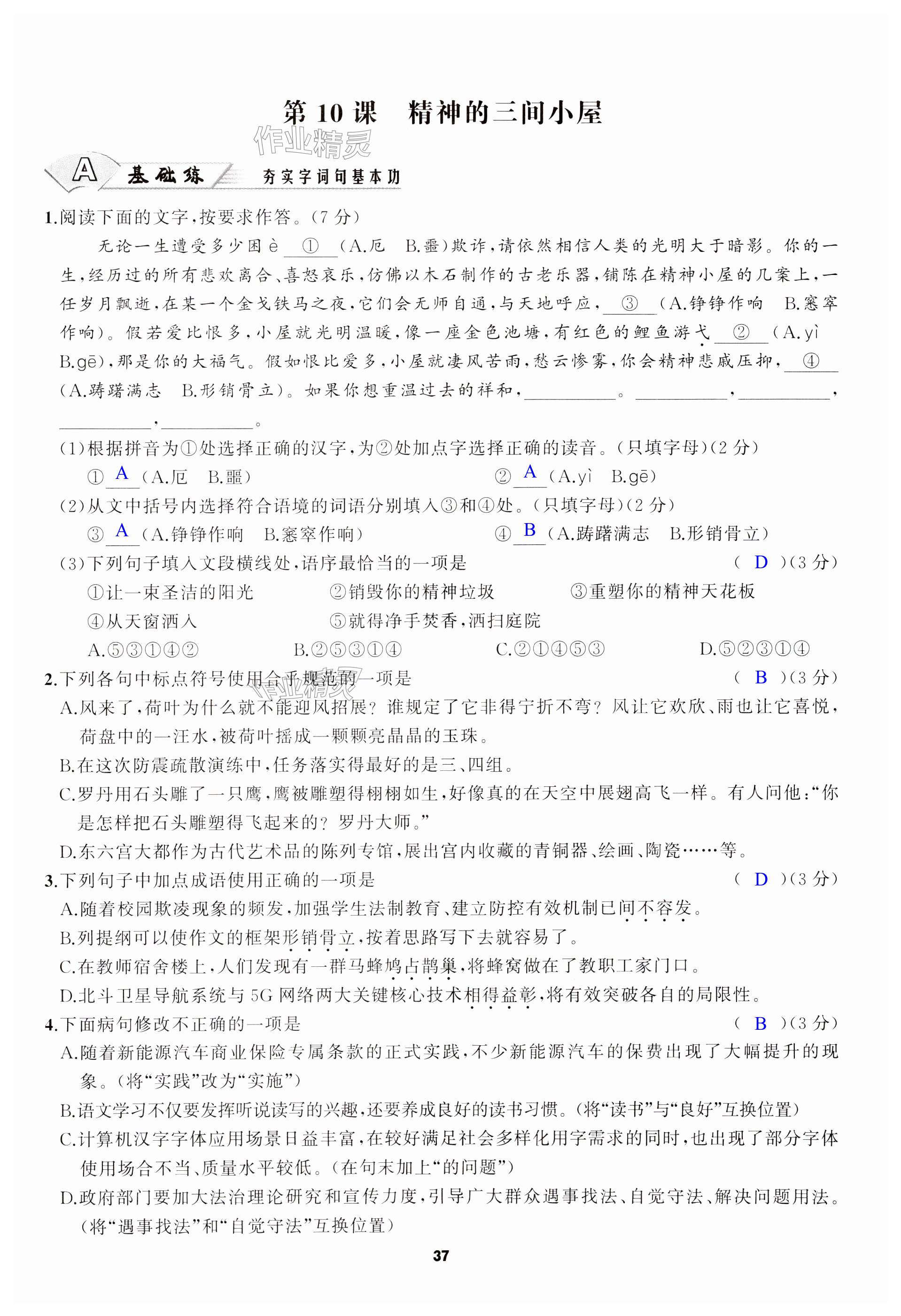 注:目前有些书本章节名称可能整理的还不是很完善,但都是按照顺序排列的,请同学们按照顺序仔细查找。练习册 2024年语文花开天津科学技术出版社九年级语文全一册人教版湖北专版 答案主要是用来给同学们做完题方便对答案用的,请勿直接抄袭。
