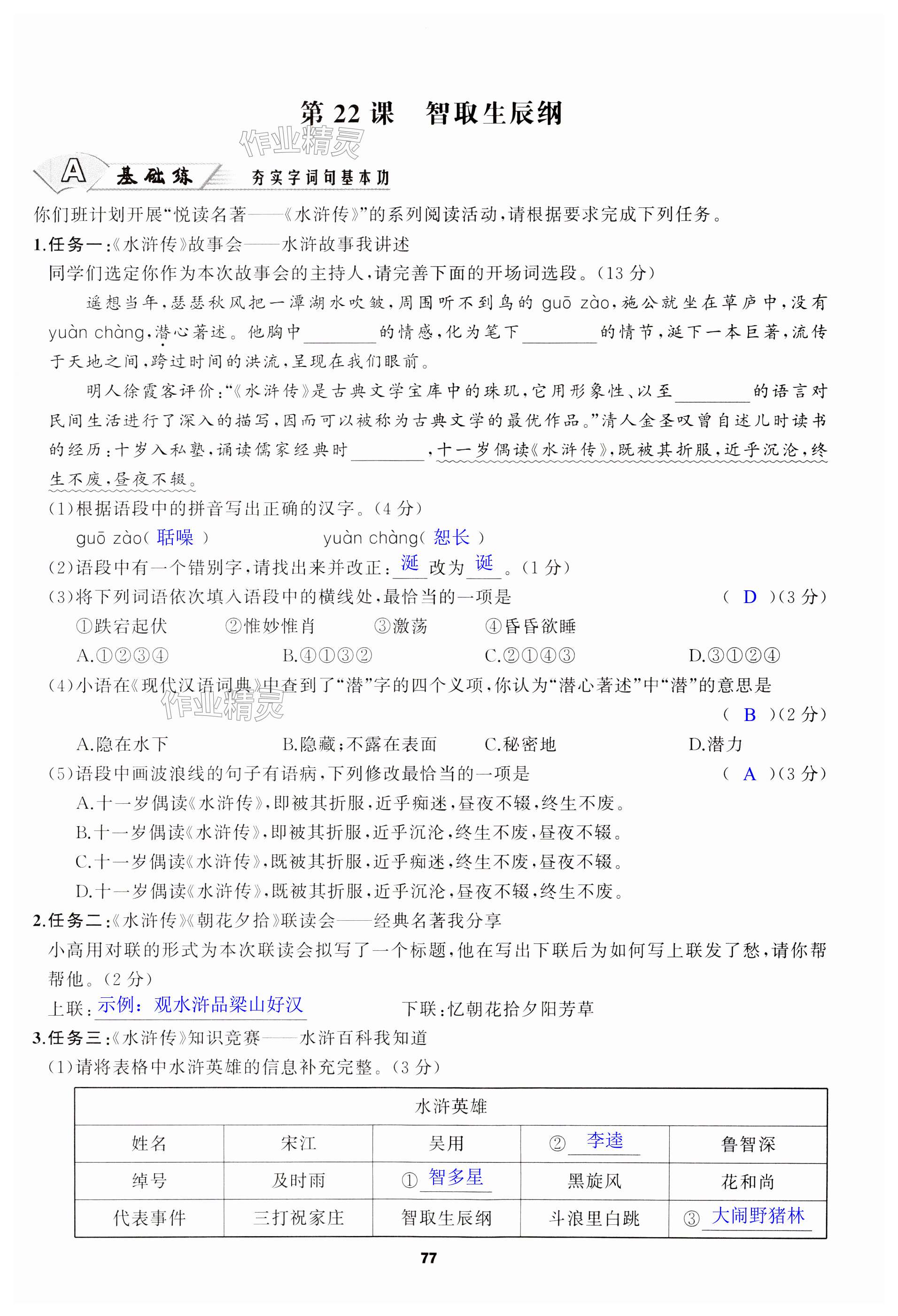 注:目前有些书本章节名称可能整理的还不是很完善,但都是按照顺序排列的,请同学们按照顺序仔细查找。练习册 2024年语文花开天津科学技术出版社九年级语文全一册人教版湖北专版 答案主要是用来给同学们做完题方便对答案用的,请勿直接抄袭。