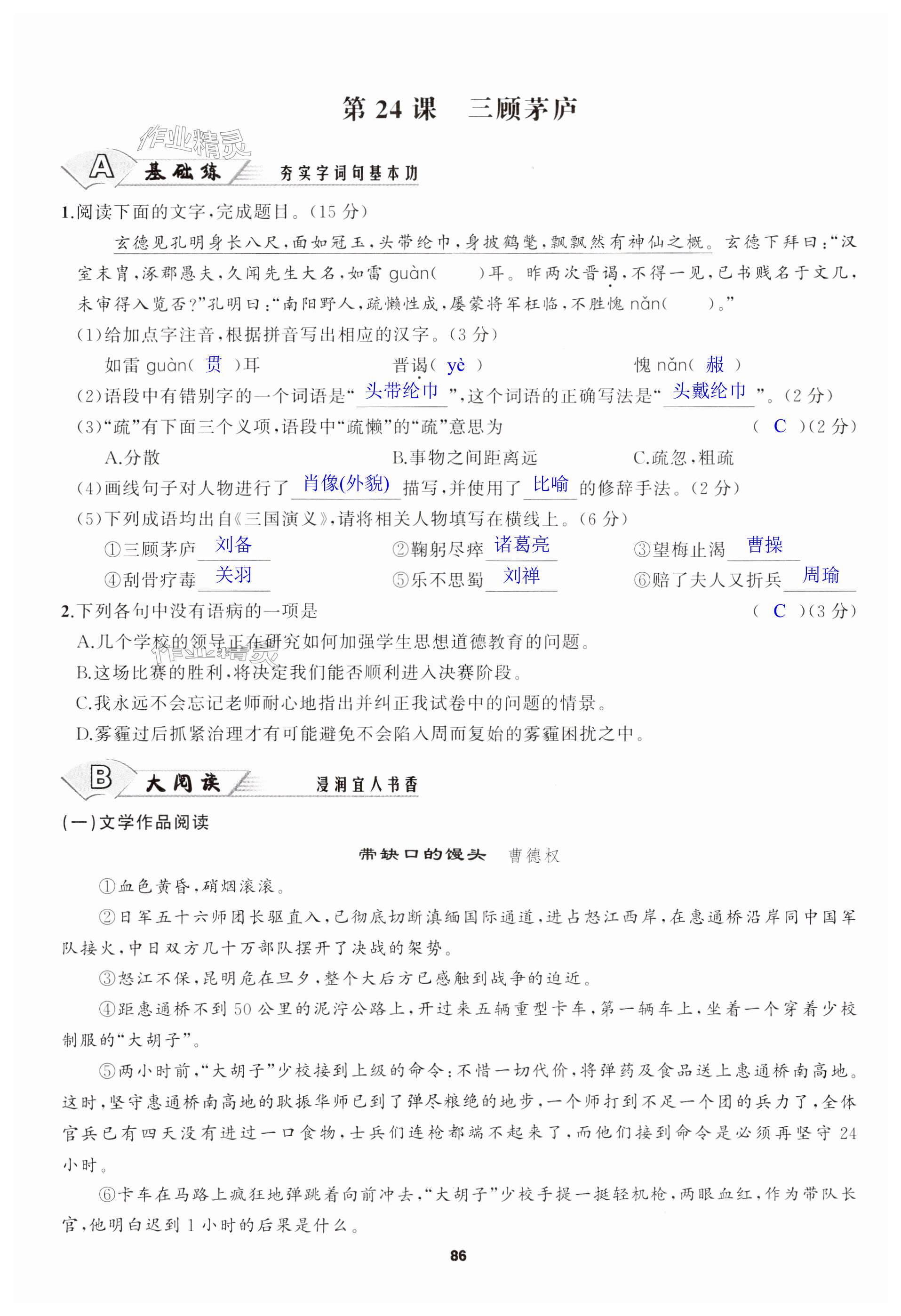 注:目前有些书本章节名称可能整理的还不是很完善,但都是按照顺序排列的,请同学们按照顺序仔细查找。练习册 2024年语文花开天津科学技术出版社九年级语文全一册人教版湖北专版 答案主要是用来给同学们做完题方便对答案用的,请勿直接抄袭。