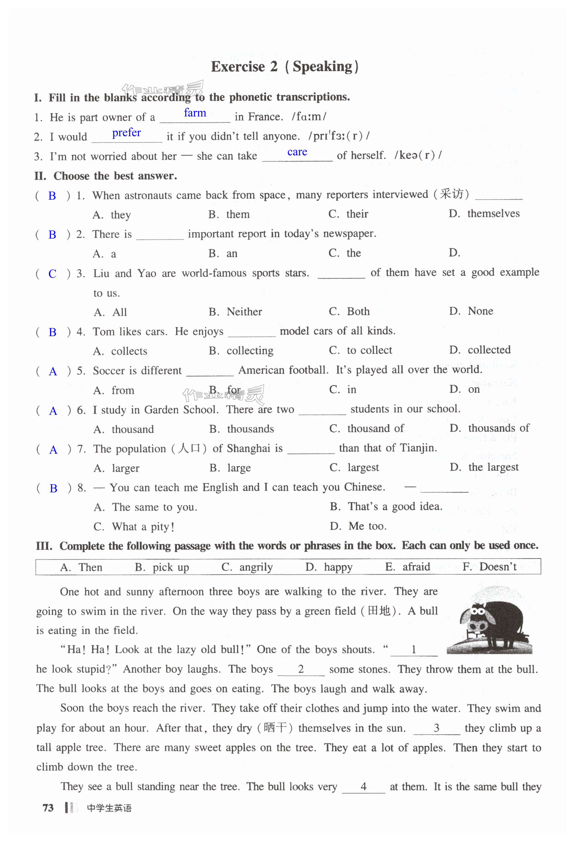注:目前有些书本章节名称可能整理的还不是很完善,但都是按照顺序排列的,请同学们按照顺序仔细查找。练习册 2024年中学生英语同步精练六年级上册沪教版五四制 答案主要是用来给同学们做完题方便对答案用的,请勿直接抄袭。